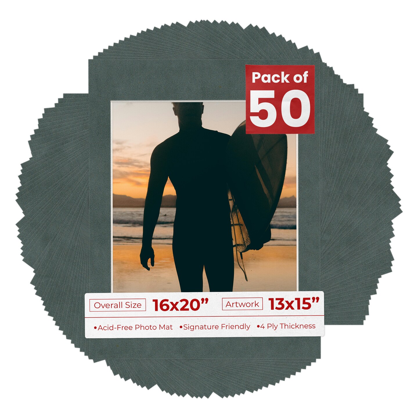 Dark Grey Suede Mat Board for 16x20 Frames - Fits 13x15 Photos