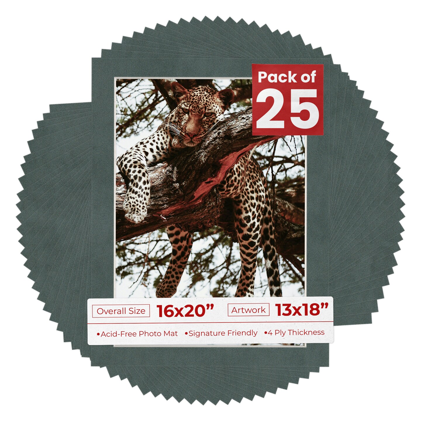 Dark Grey Suede Mat Board for 16x20 Frames - Fits 13x18 Photos