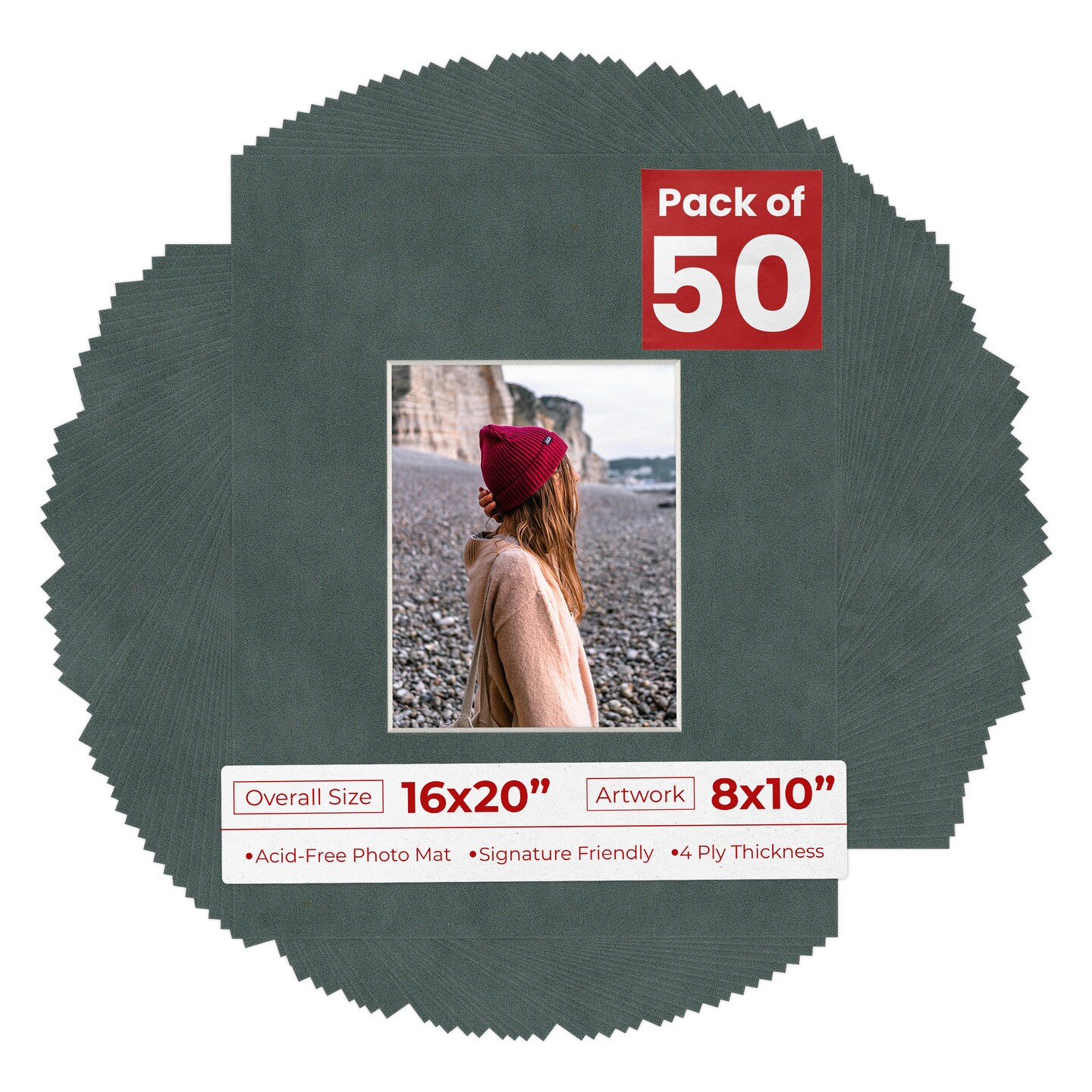 Dark Grey Suede Mat Board for 16x20 Frames - Fits 8x10 Photos