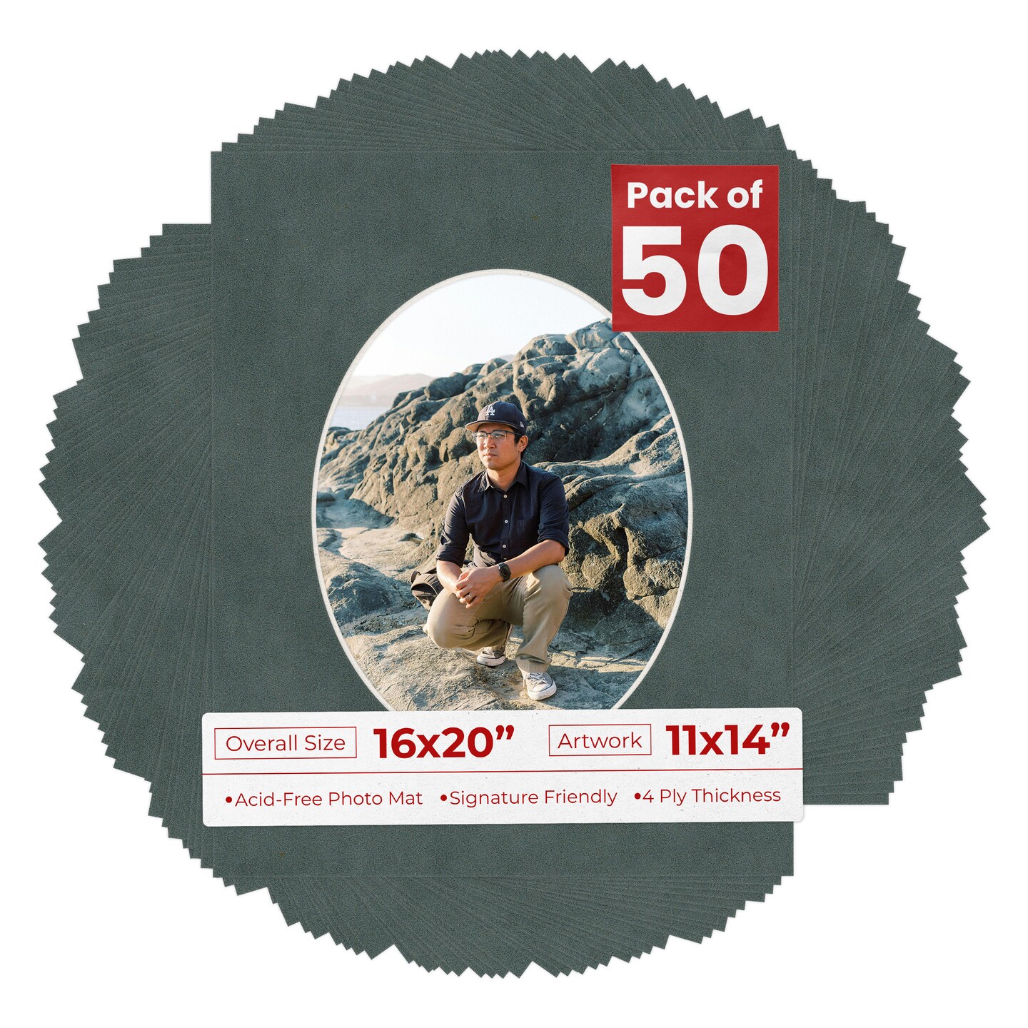 Dark Grey Suede Mat Board for 16x20 Frames - Oval Opening for 11x14 Photos