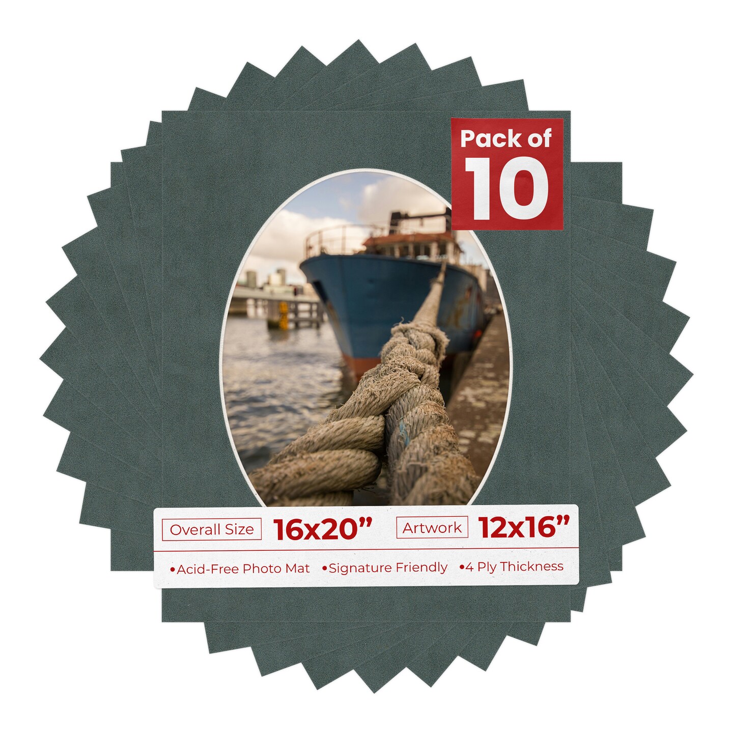 Dark Grey Suede Mat Board for 16x20 Frames - Oval Opening for 12x16 Photos
