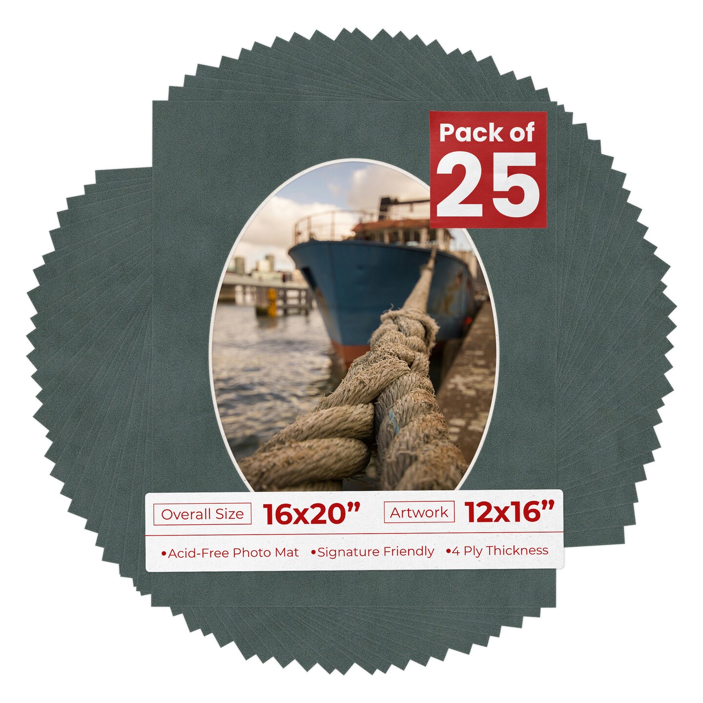 Dark Grey Suede Mat Board for 16x20 Frames - Oval Opening for 12x16 Photos