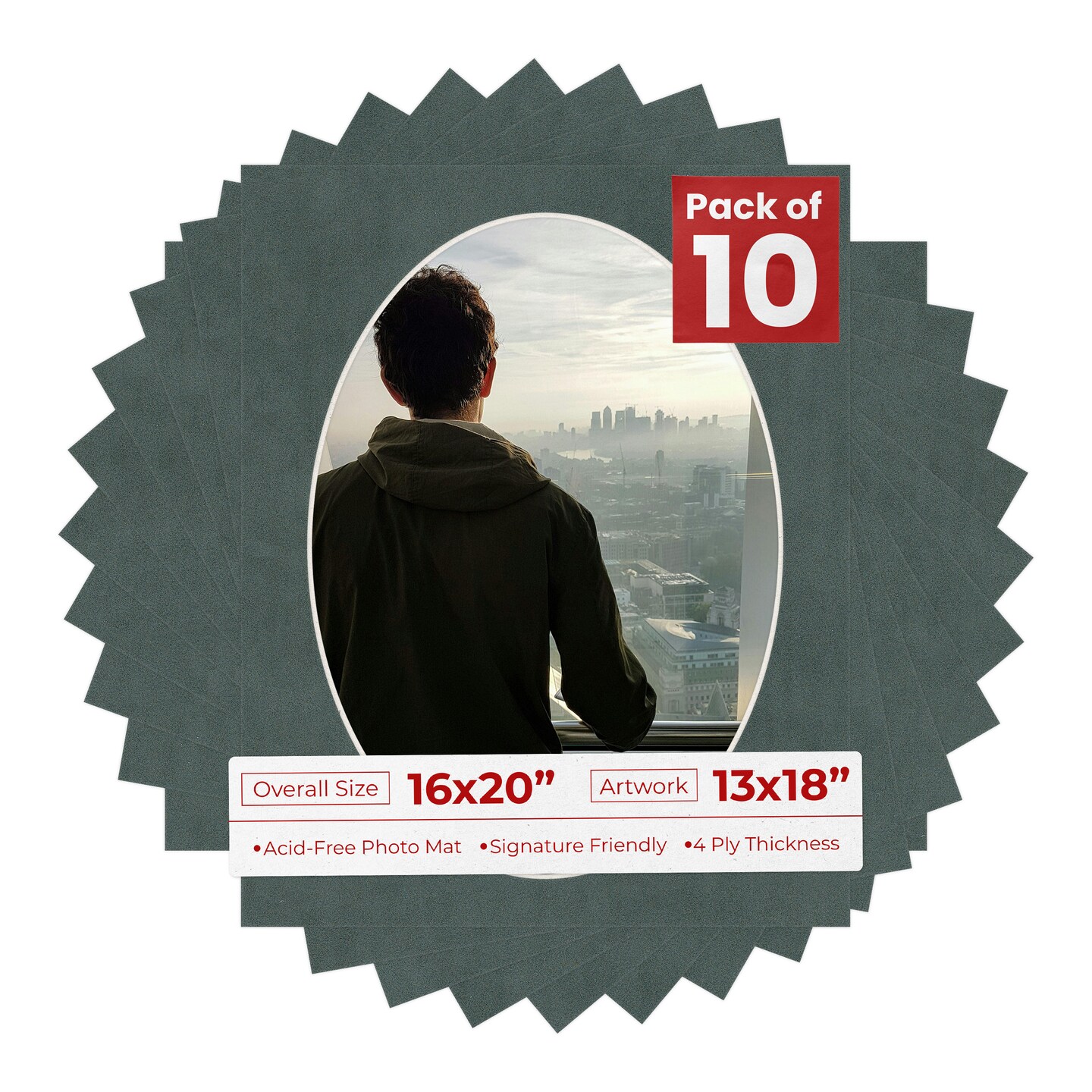 Dark Grey Suede Mat Board for 16x20 Frames - Oval Opening for 13x18 Photos
