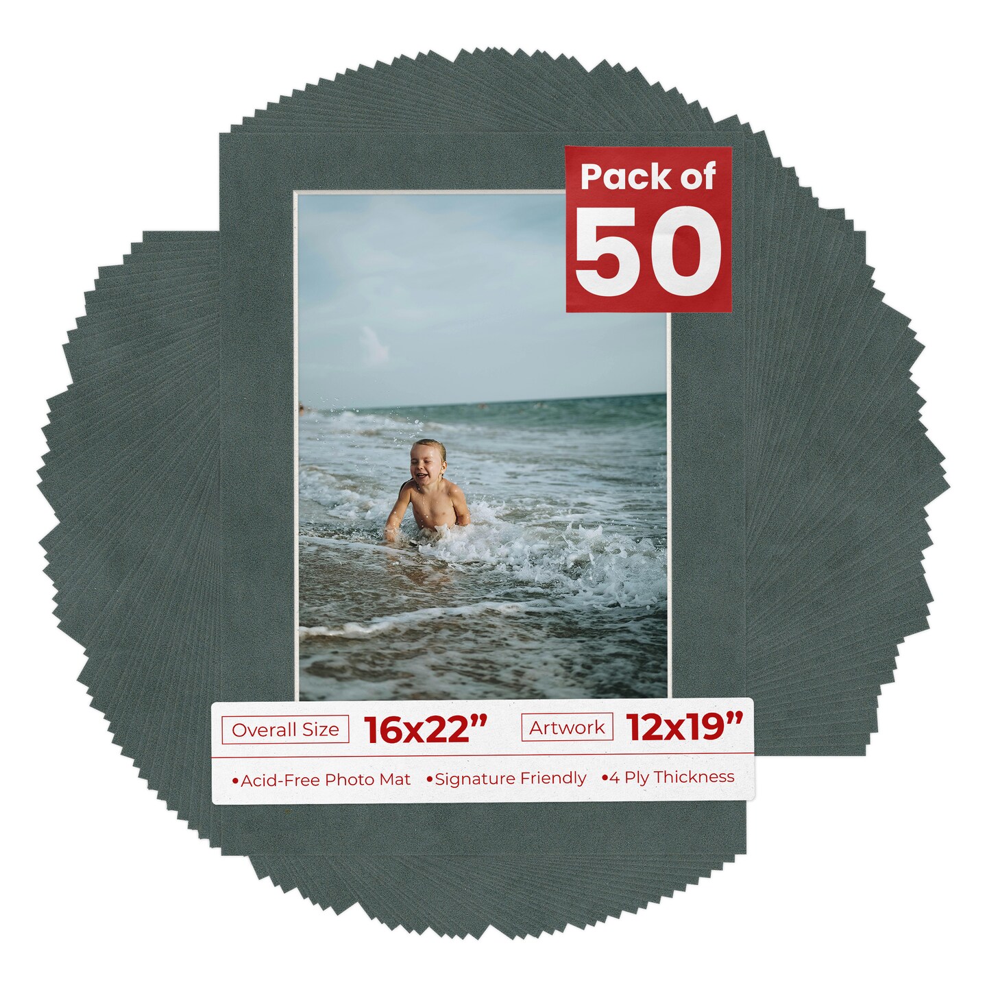 Dark Grey Suede Mat Board for 16x22 Frames - Fits 12x19 Photos