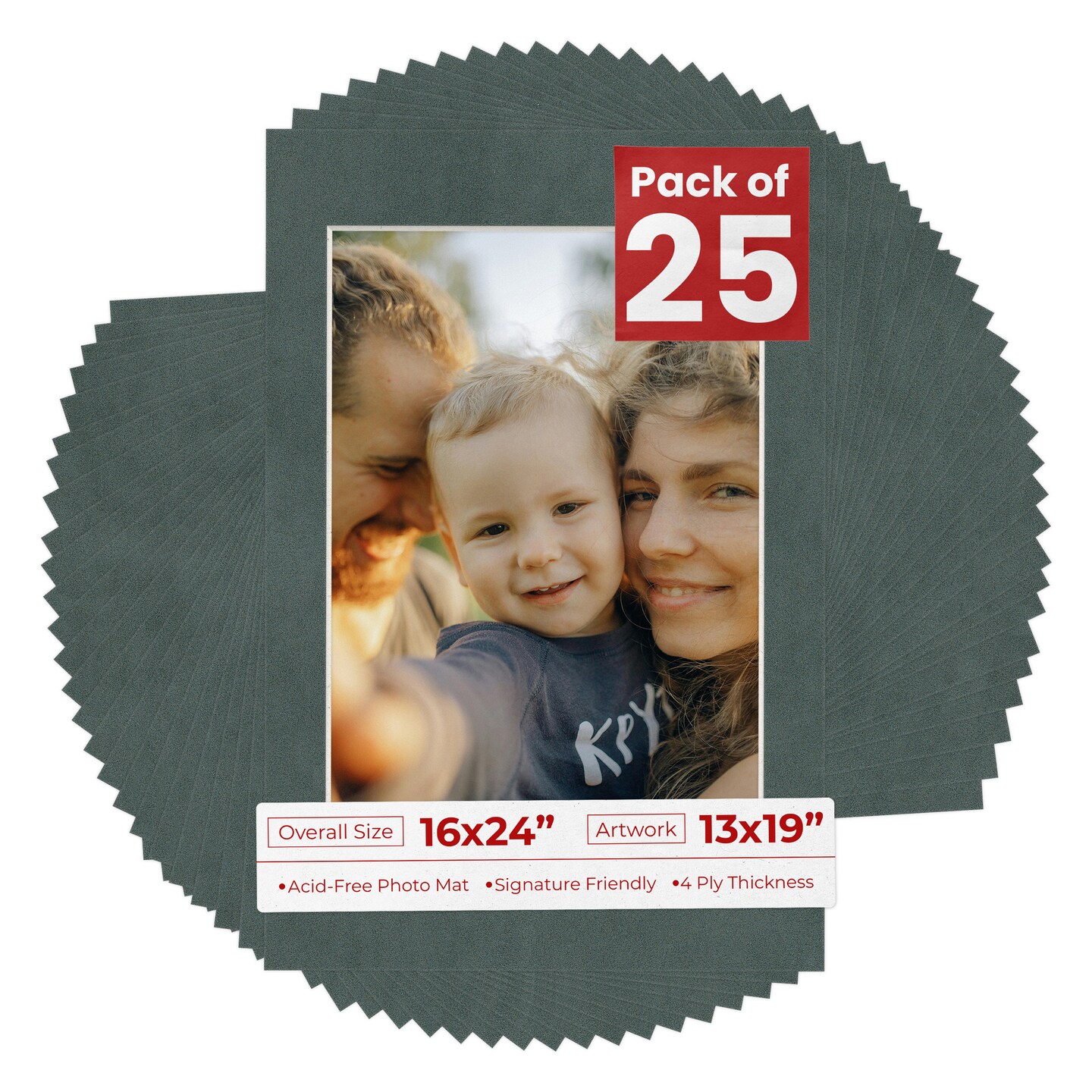 Dark Grey Suede Mat Board for 16x24 Frames - Fits 13x19 Photos