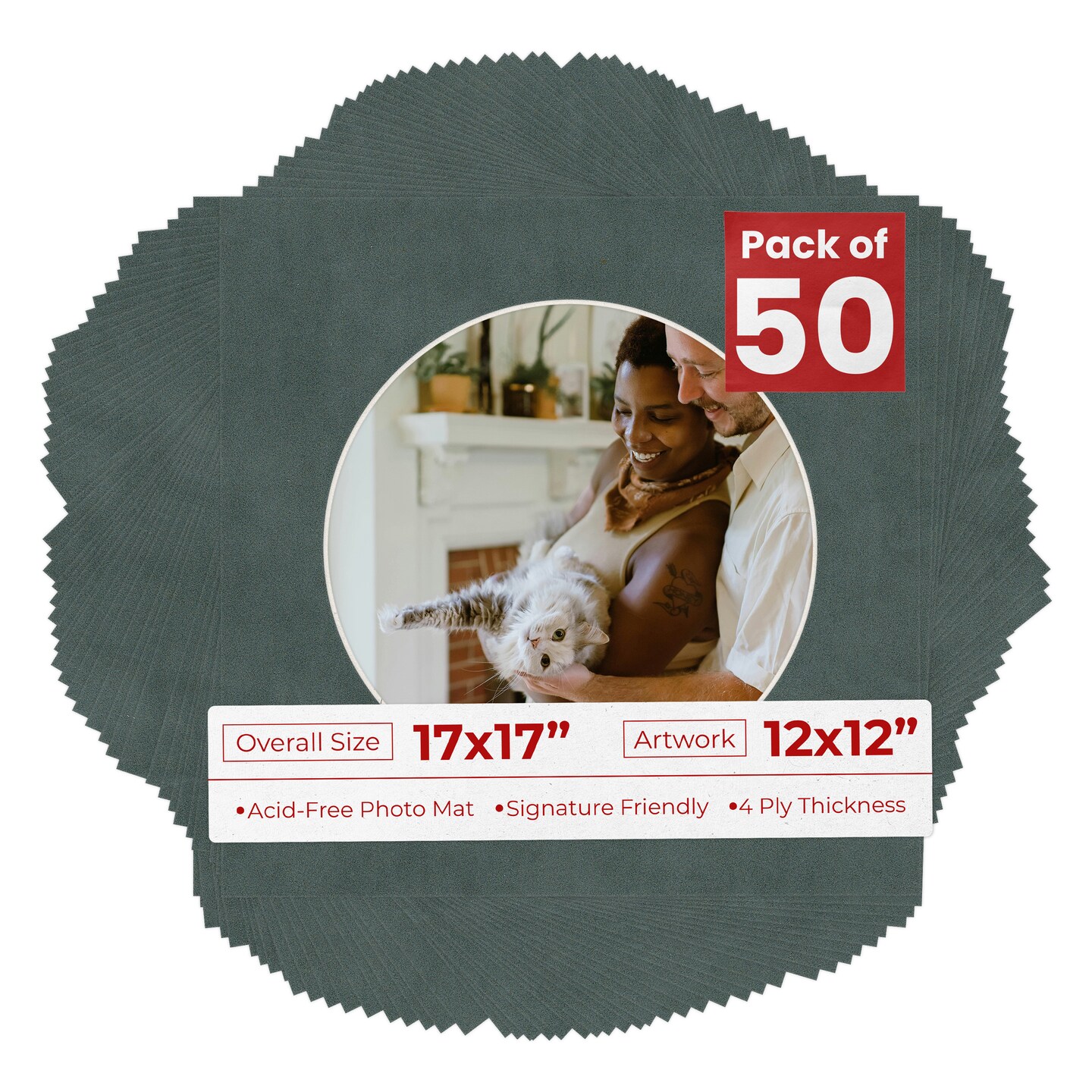 Dark Grey Suede Mat Board for 17x17 Frames - Circle Opening for 12x12 Photos