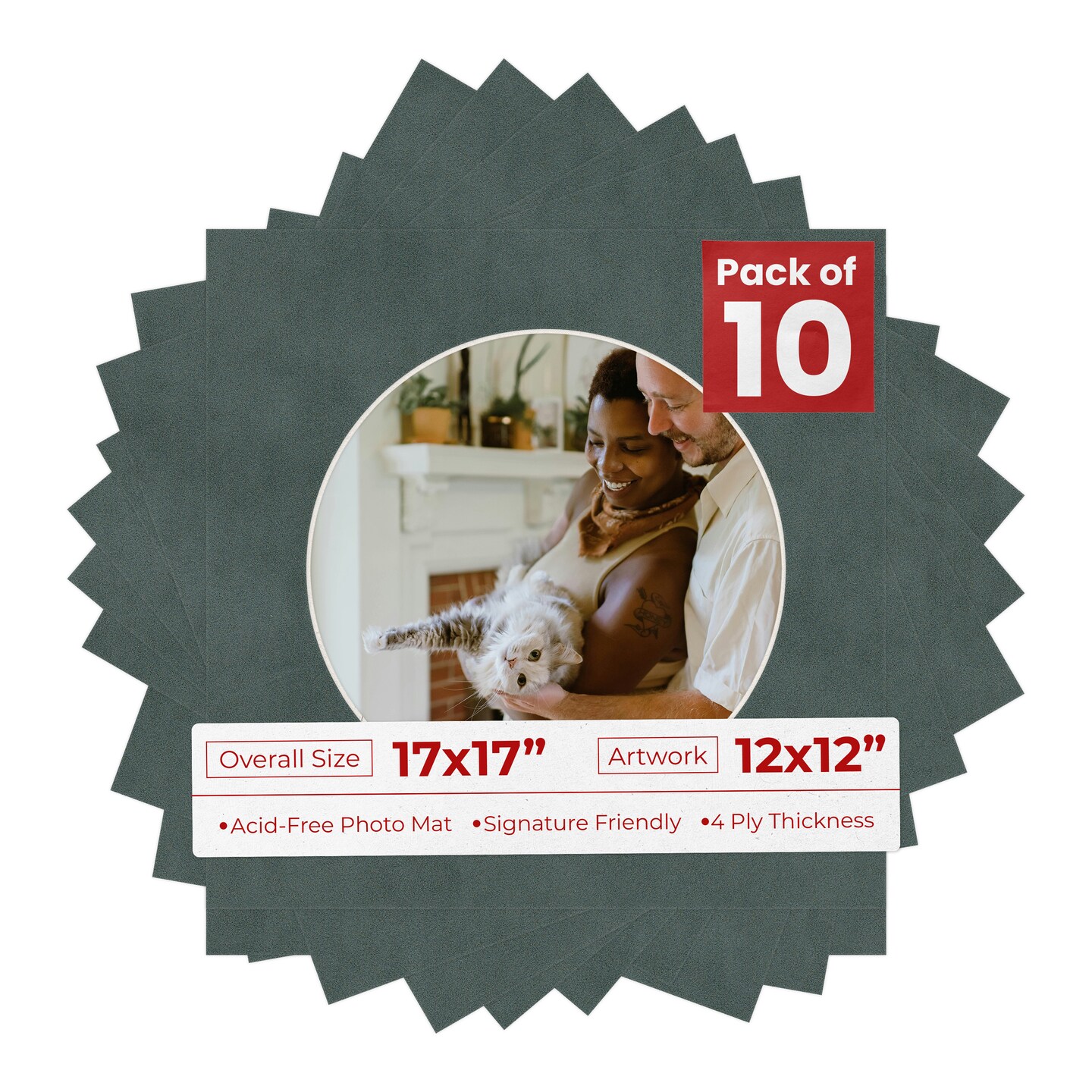 Dark Grey Suede Mat Board for 17x17 Frames - Circle Opening for 12x12 Photos