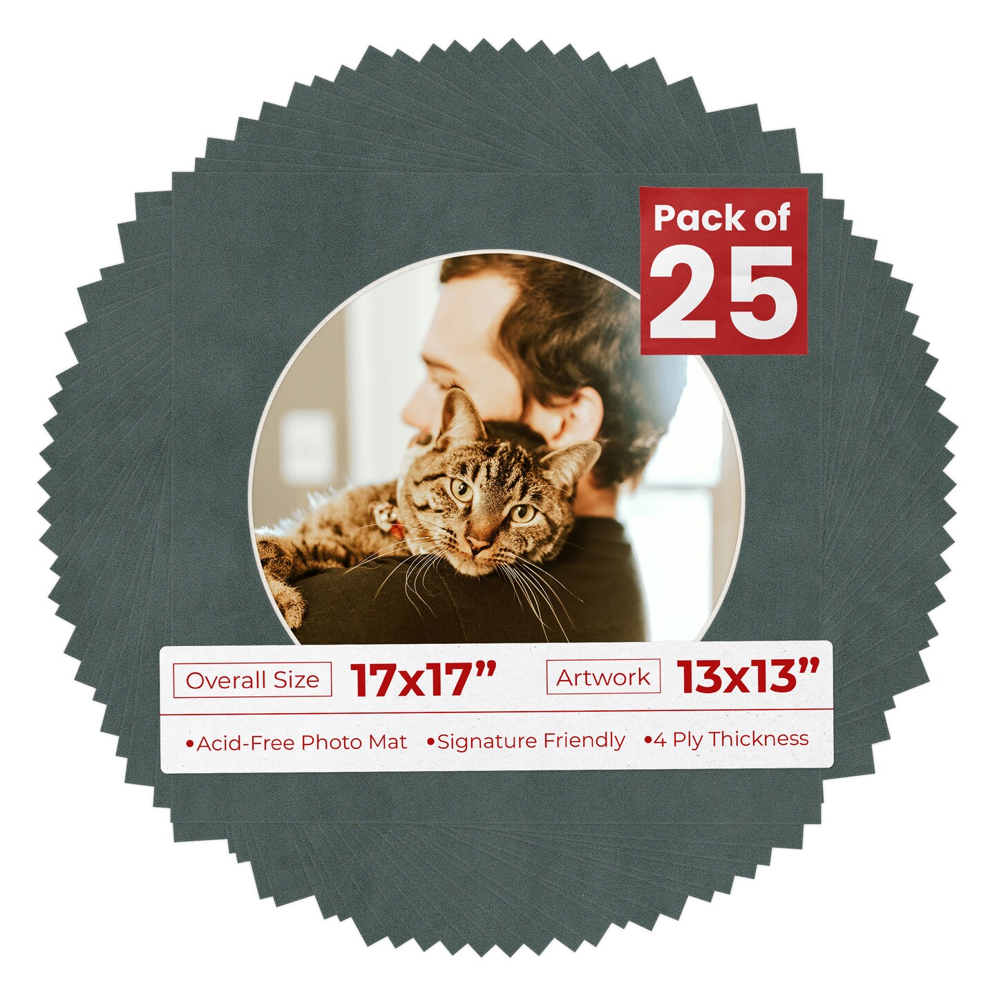 Dark Grey Suede Mat Board for 17x17 Frames - Circle Opening for 13x13 Photos