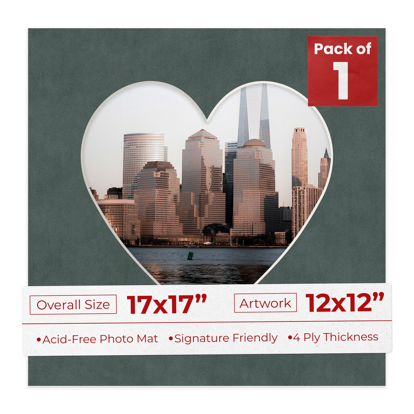 Dark Grey Suede Mat Board for 17x17 Frames - Heart Opening for 12x12 Photos