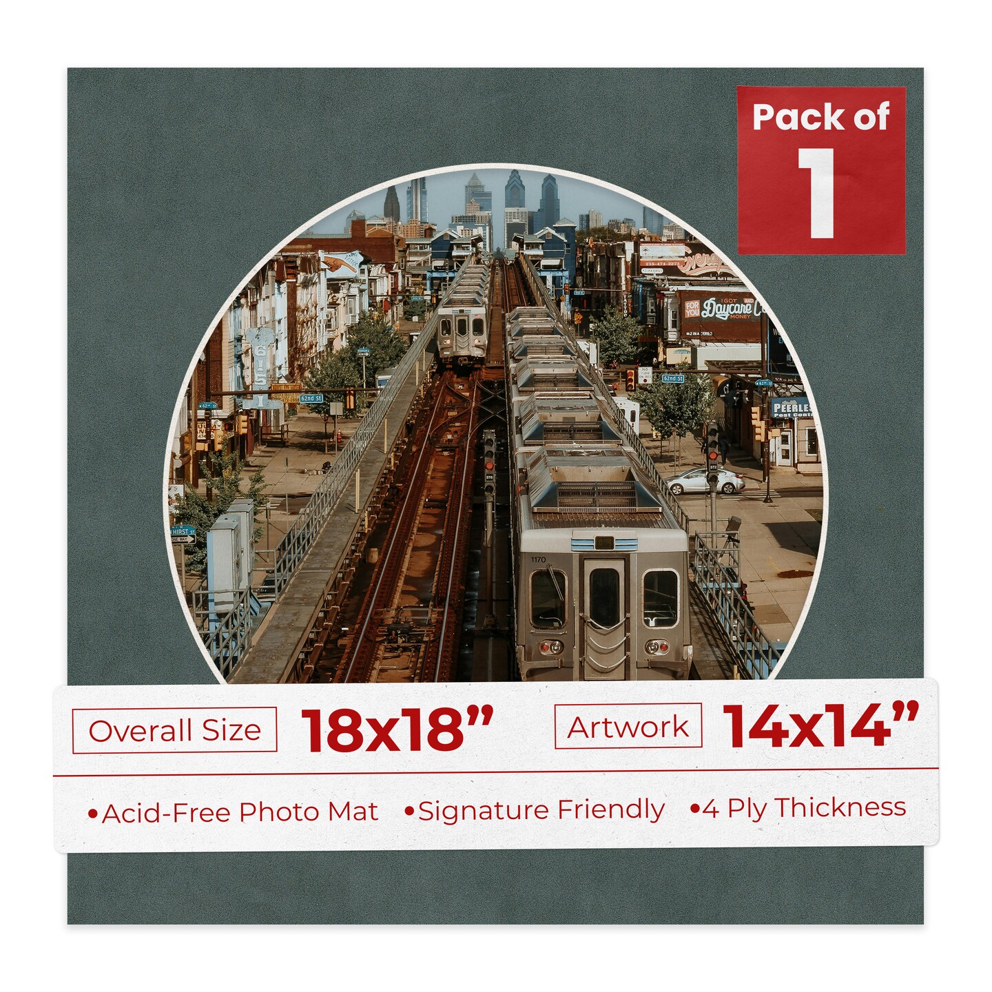 Dark Grey Suede Mat Board for 18x18 Frames - Circle Opening for 14x14 Photos