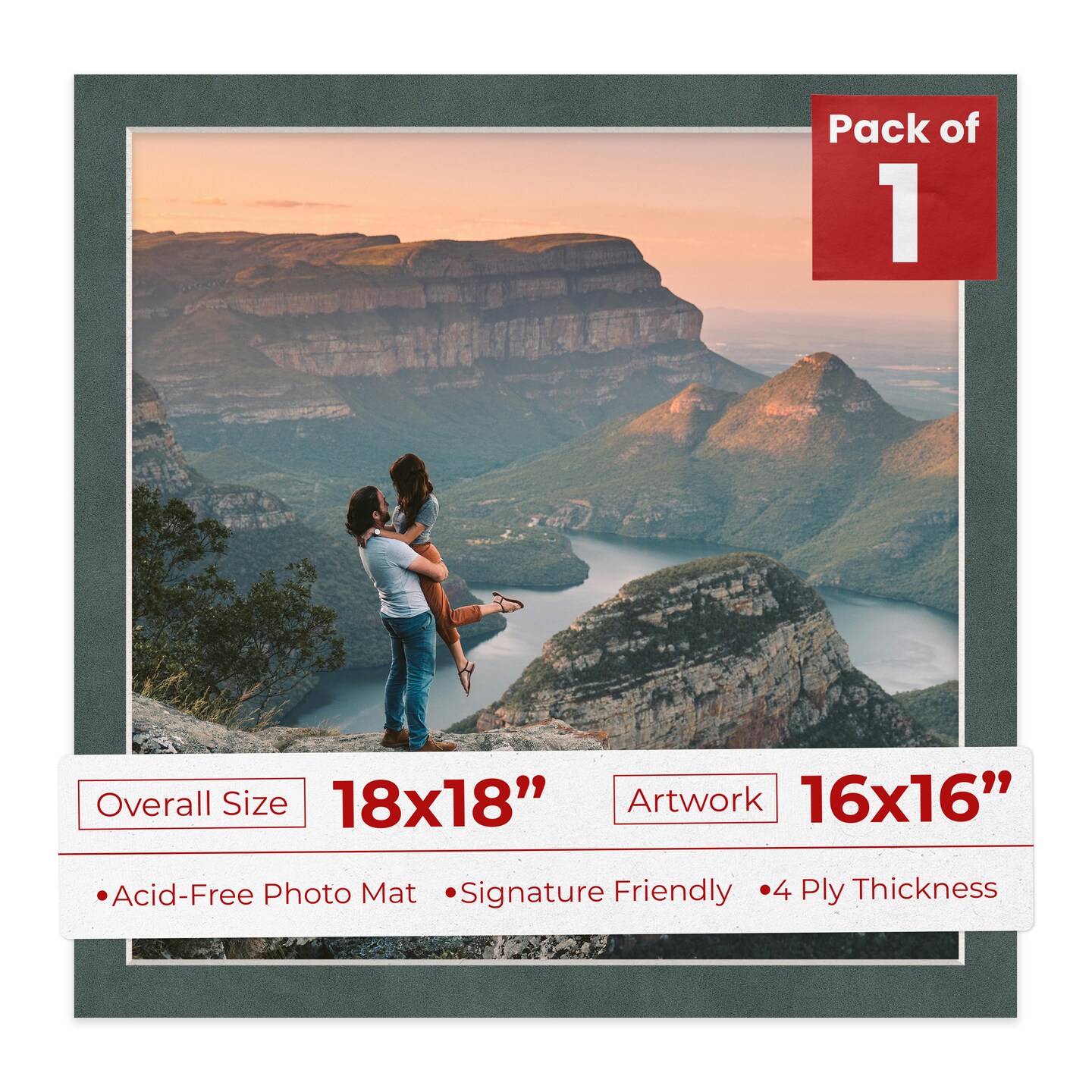 Dark Grey Suede Mat Board for 18x18 Frames - Fits 16x16 Photos
