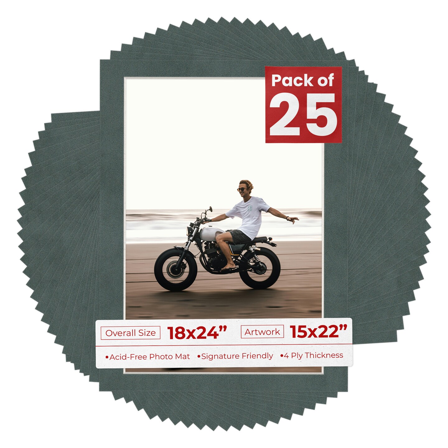 Dark Grey Suede Mat Board for 18x24 Frames - Fits 15x22 Photos