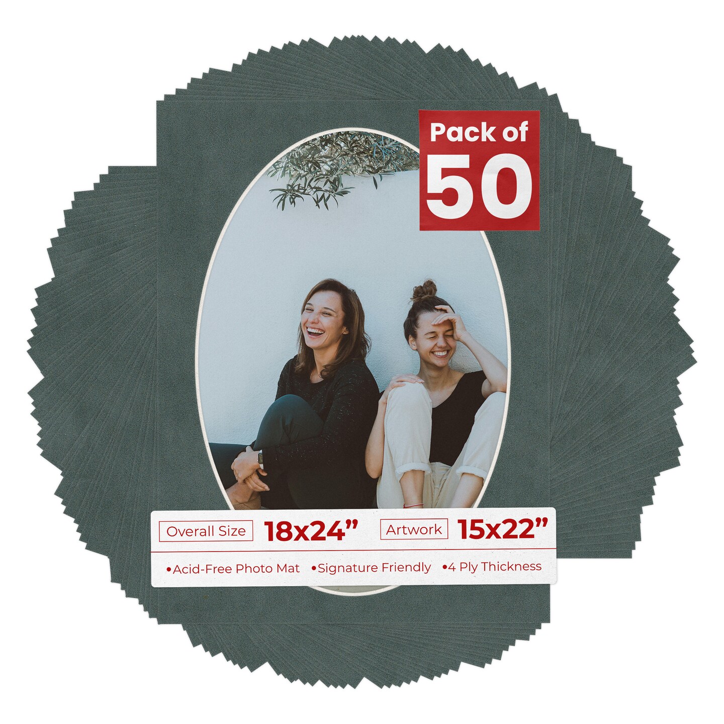 Dark Grey Suede Mat Board for 18x24 Frames - Oval Opening for 15x22 Photos