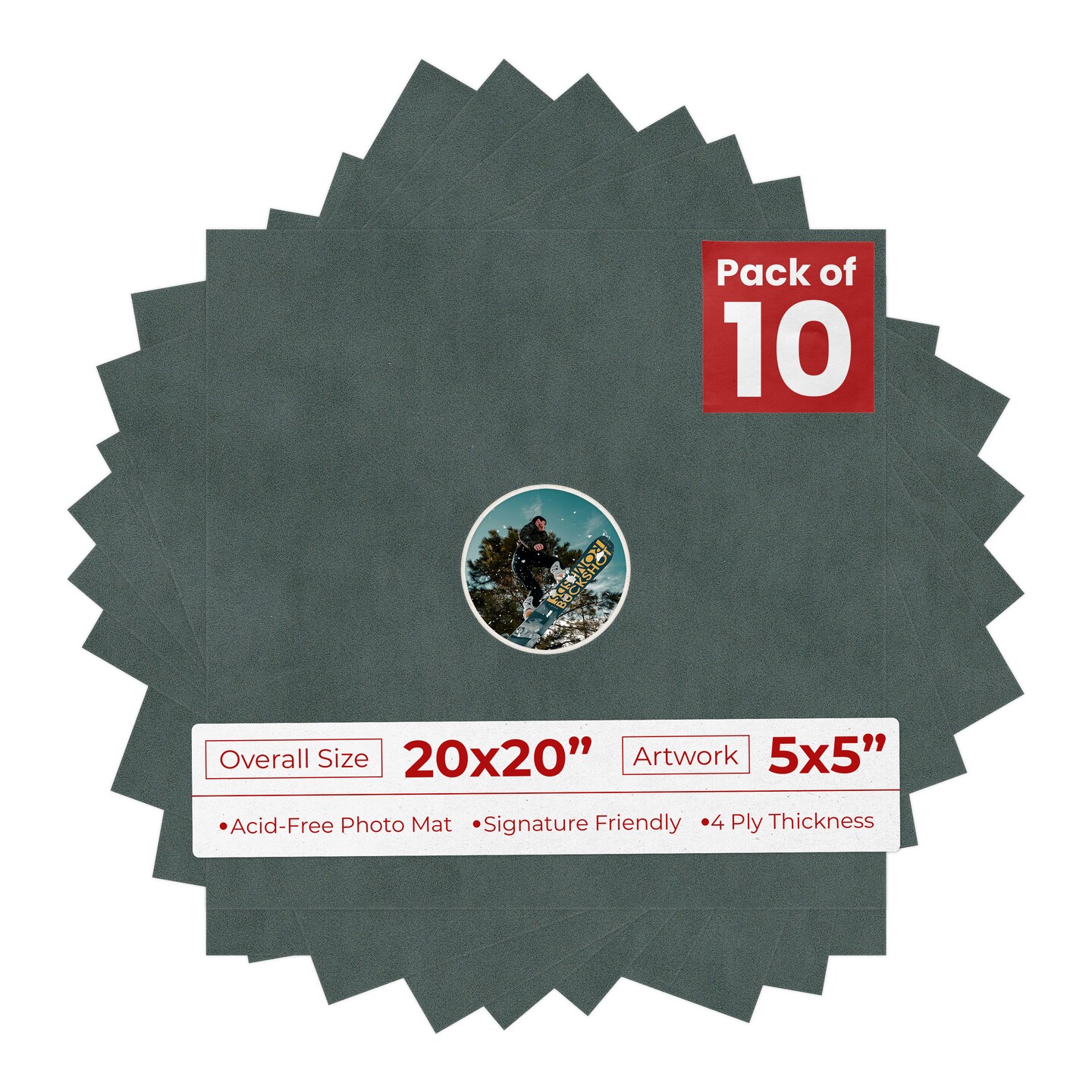 Dark Grey Suede Mat Board for 20x20 Frames - Circle Opening for 5x5 Photos