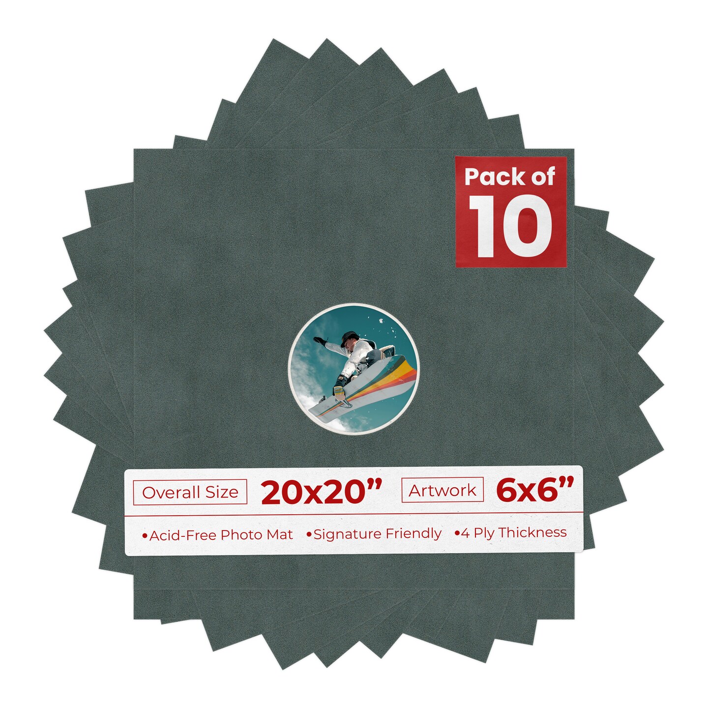 Dark Grey Suede Mat Board for 20x20 Frames - Circle Opening for 6x6 Photos