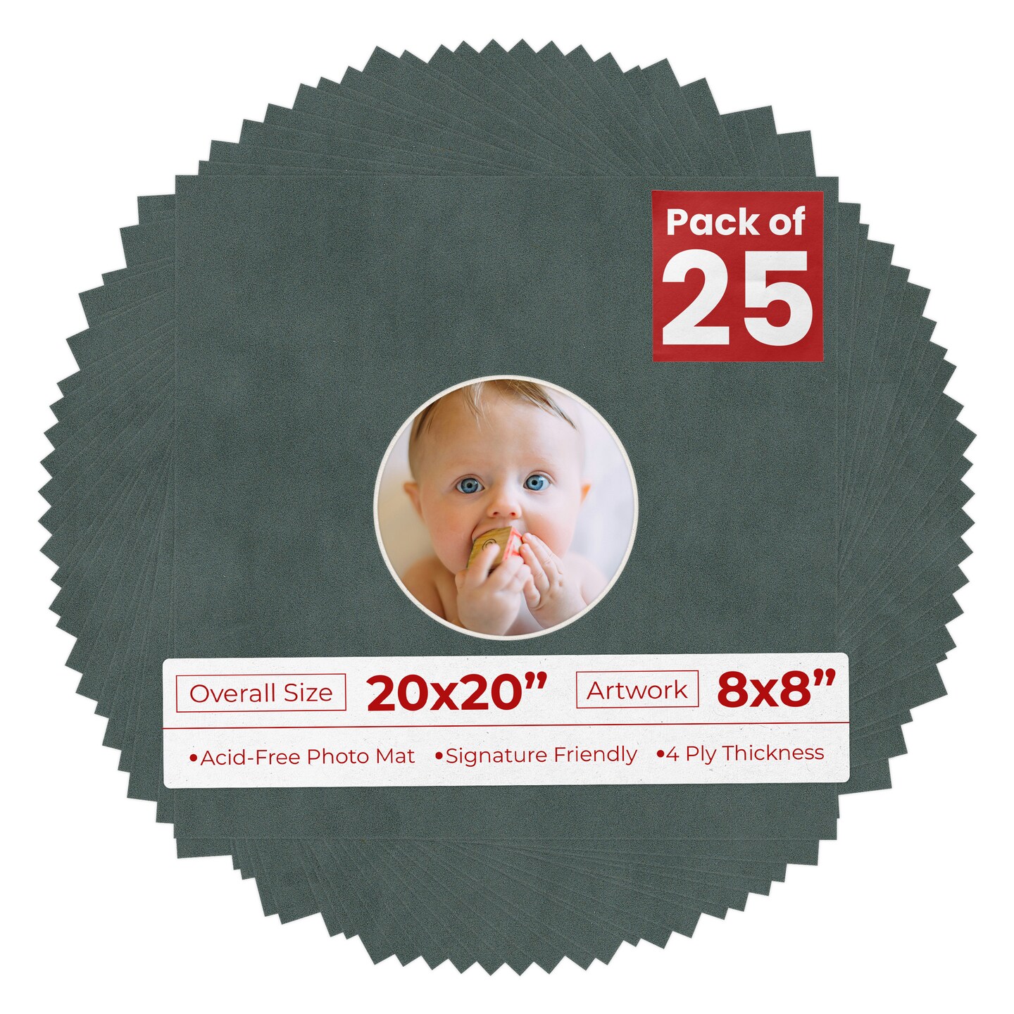 Dark Grey Suede Mat Board for 20x20 Frames - Circle Opening for 8x8 Photos