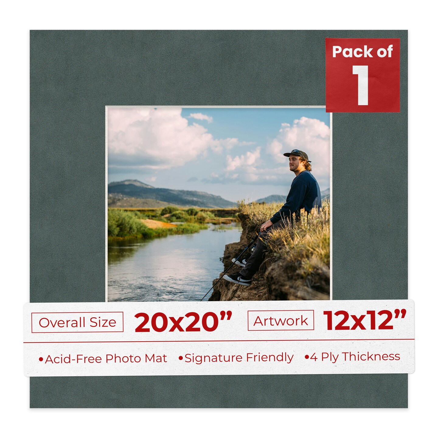 Dark Grey Suede Mat Board for 20x20 Frames - Fits 12x12 Photos