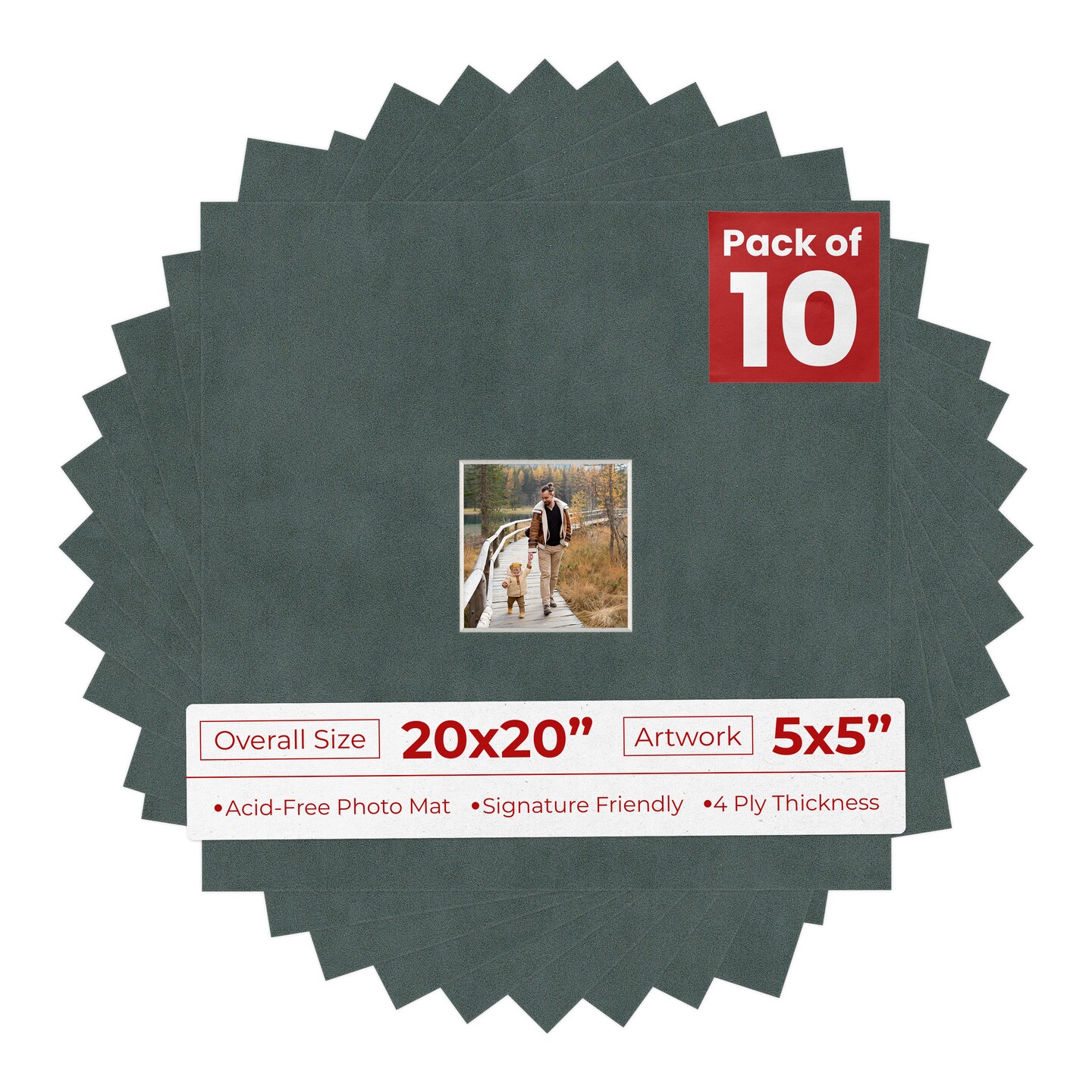 Dark Grey Suede Mat Board for 20x20 Frames - Fits 5x5 Photos