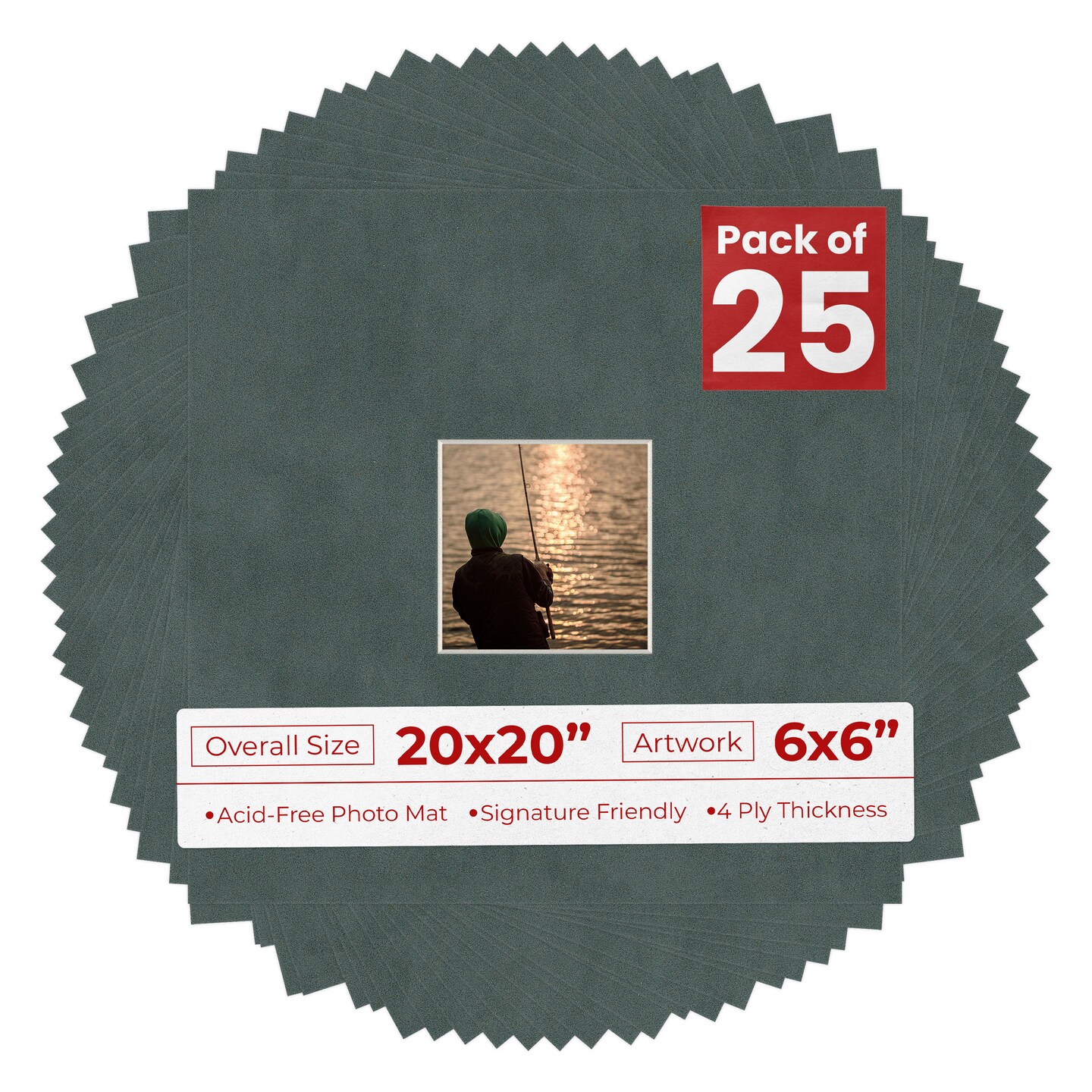 Dark Grey Suede Mat Board for 20x20 Frames - Fits 6x6 Photos