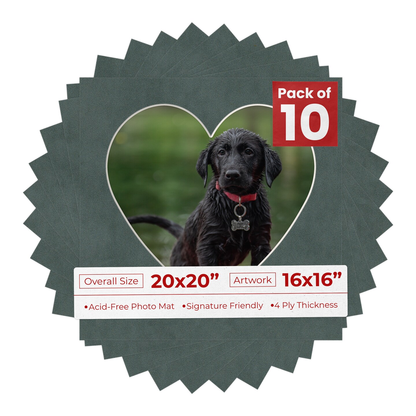 Dark Grey Suede Mat Board for 20x20 Frames - Heart Opening for 16x16 Photos