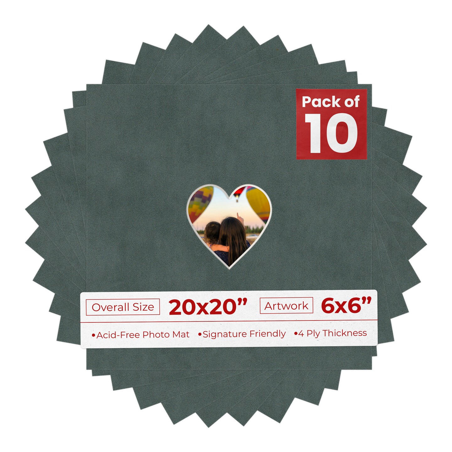 Dark Grey Suede Mat Board for 20x20 Frames - Heart Opening for 6x6 Photos