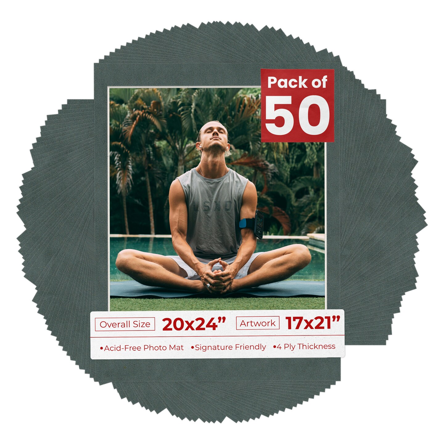 Dark Grey Suede Mat Board for 20x24 Frames - Fits 17x21 Photos