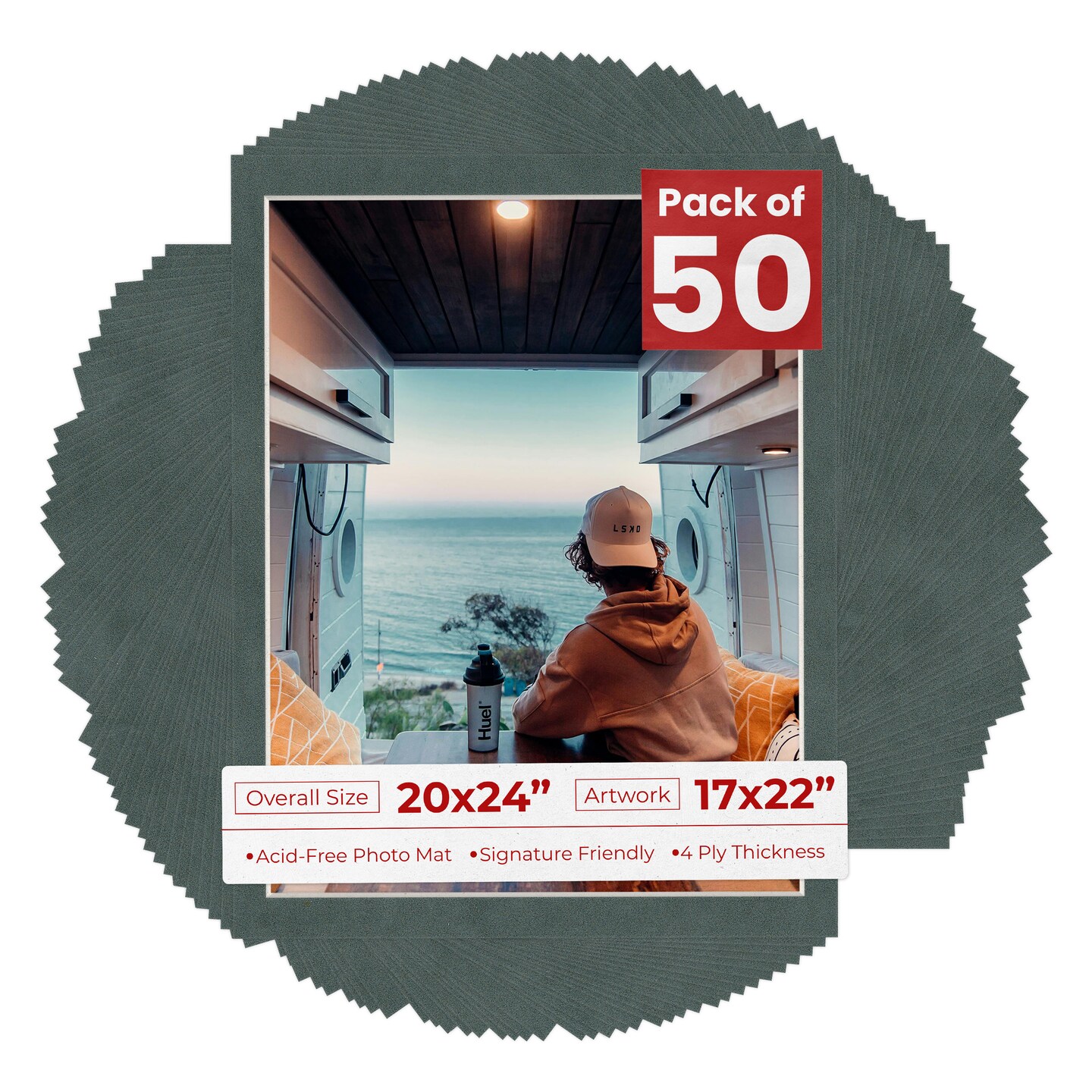 Dark Grey Suede Mat Board for 20x24 Frames - Fits 17x22 Photos