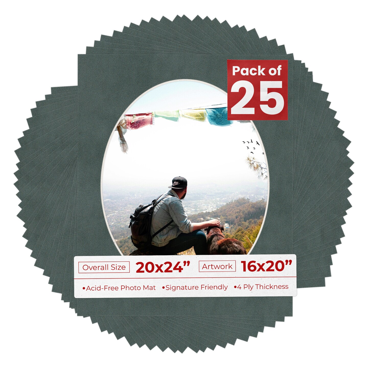 Dark Grey Suede Mat Board for 20x24 Frames - Oval Opening for 16x20 Photos
