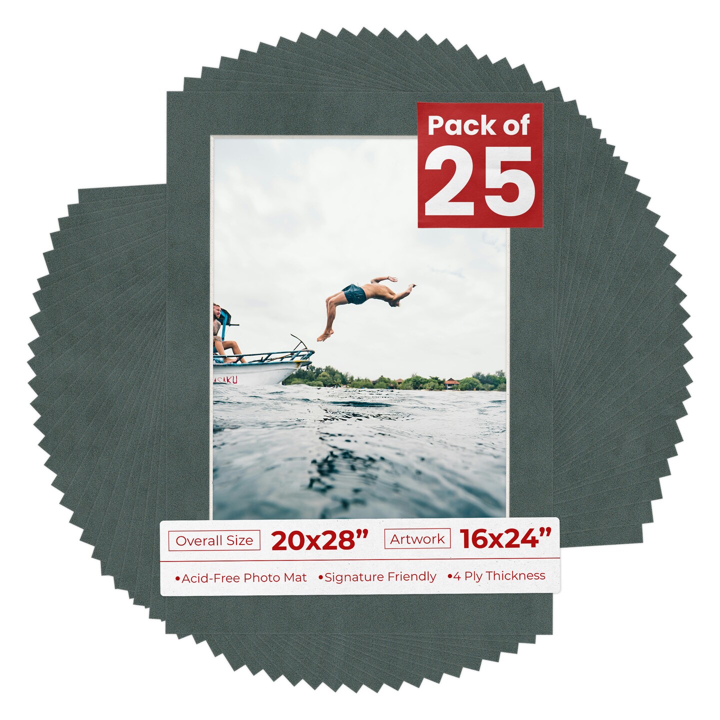Dark Grey Suede Mat Board for 20x28 Frames - Fits 16x24 Photos