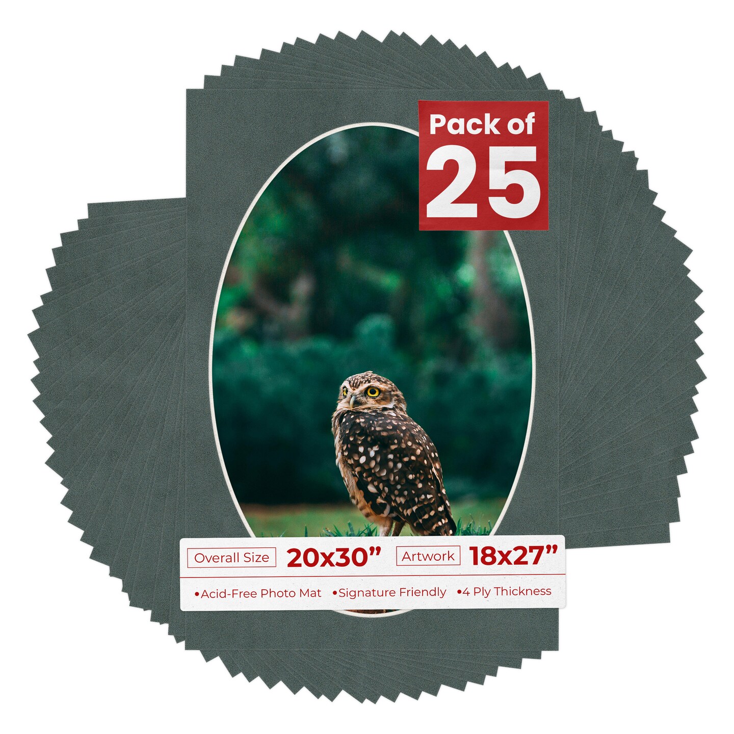 Dark Grey Suede Mat Board for 20x30 Frames - Oval Opening for 18x27 Photos
