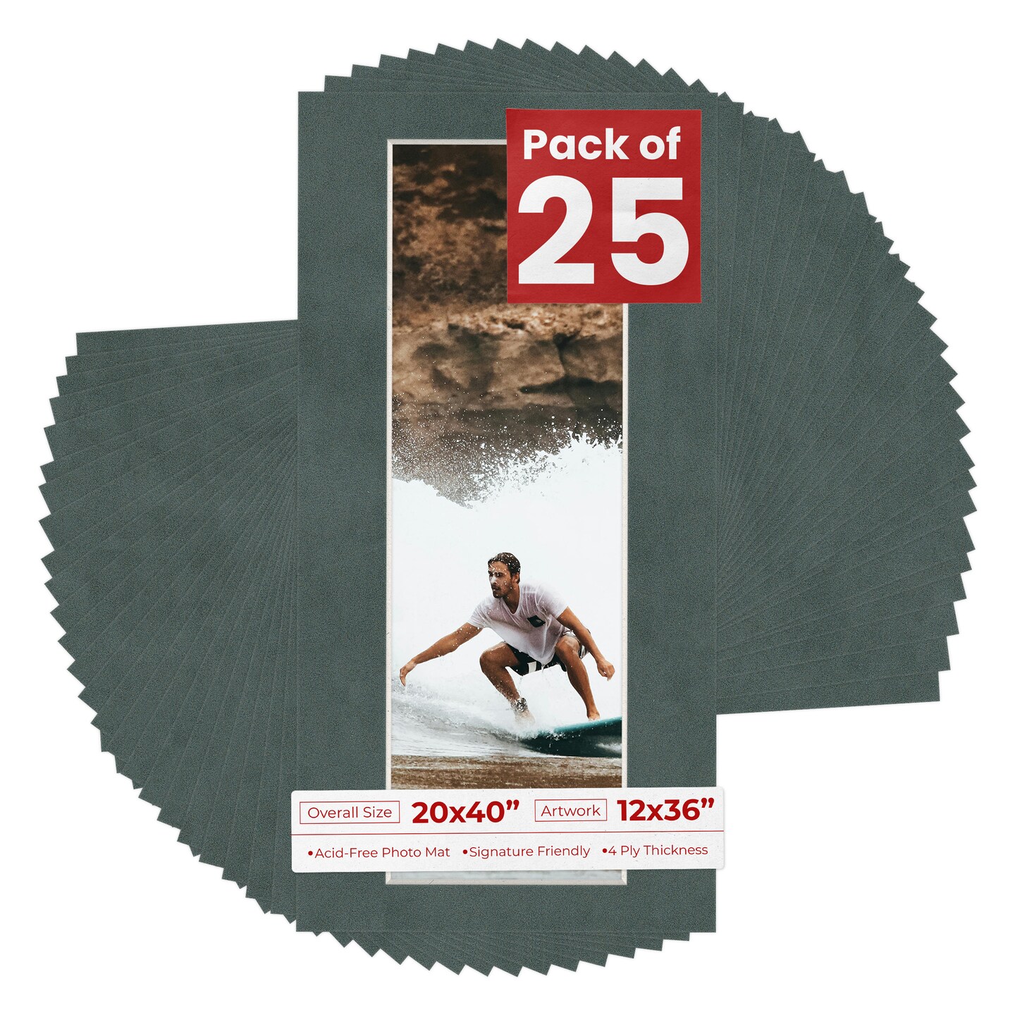 Dark Grey Suede Mat Board for 20x40 Frames - Fits 12x36 Photos
