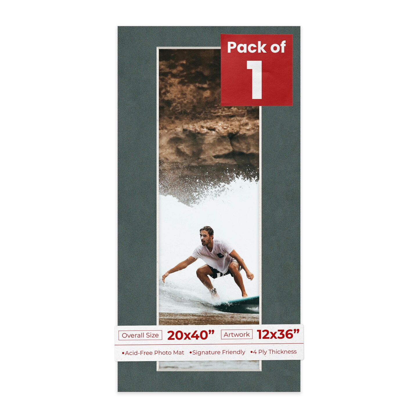 Dark Grey Suede Mat Board for 20x40 Frames - Fits 12x36 Photos