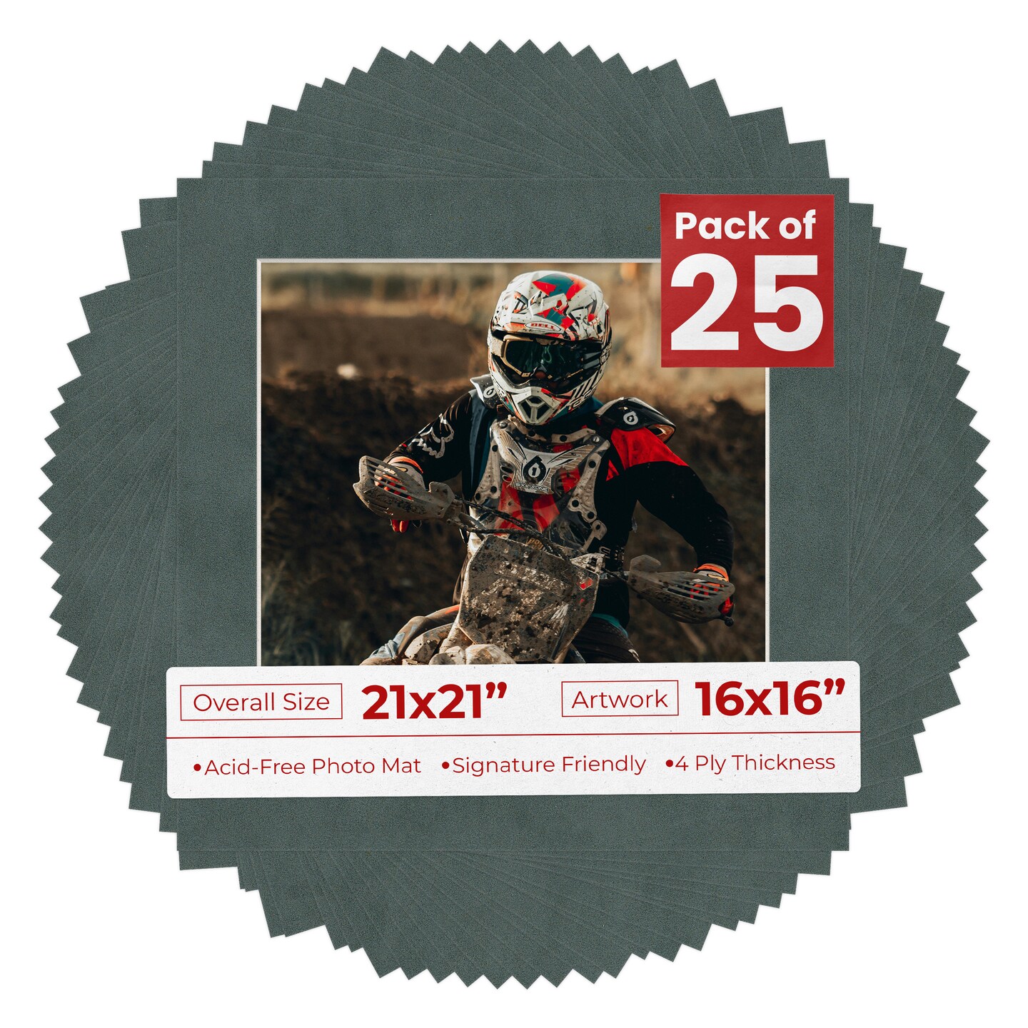 Dark Grey Suede Mat Board for 21x21 Frames - Fits 16x16 Photos
