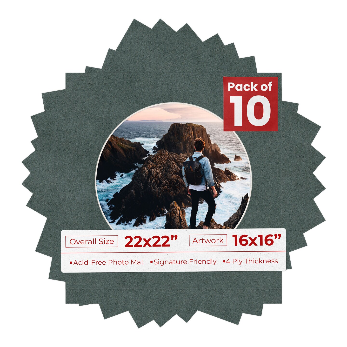Dark Grey Suede Mat Board for 22x22 Frames - Circle Opening for 16x16 Photos