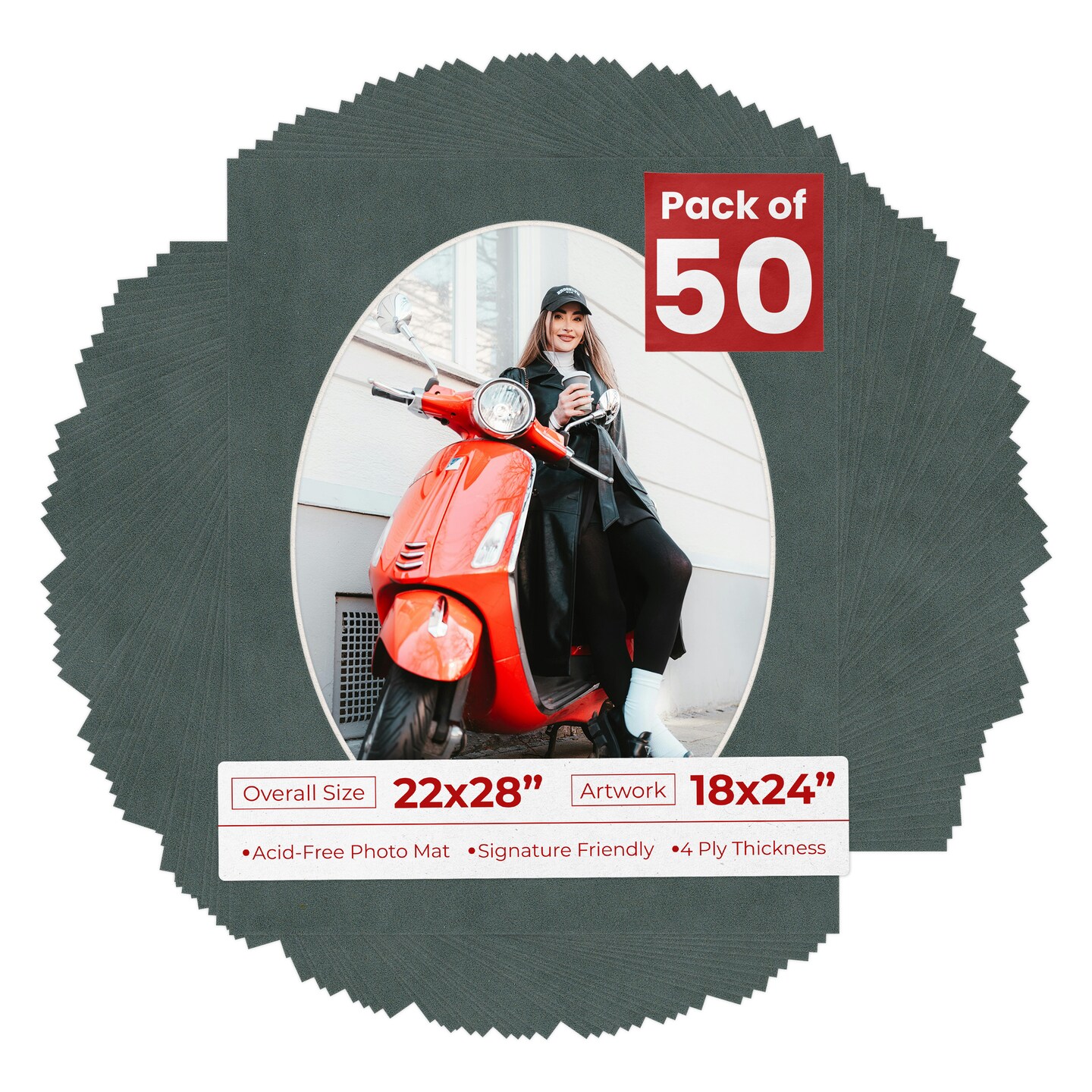 Dark Grey Suede Mat Board for 22x28 Frames - Oval Opening for 18x24 Photos