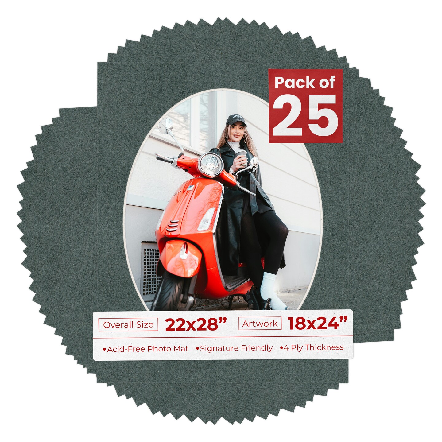 Dark Grey Suede Mat Board for 22x28 Frames - Oval Opening for 18x24 Photos