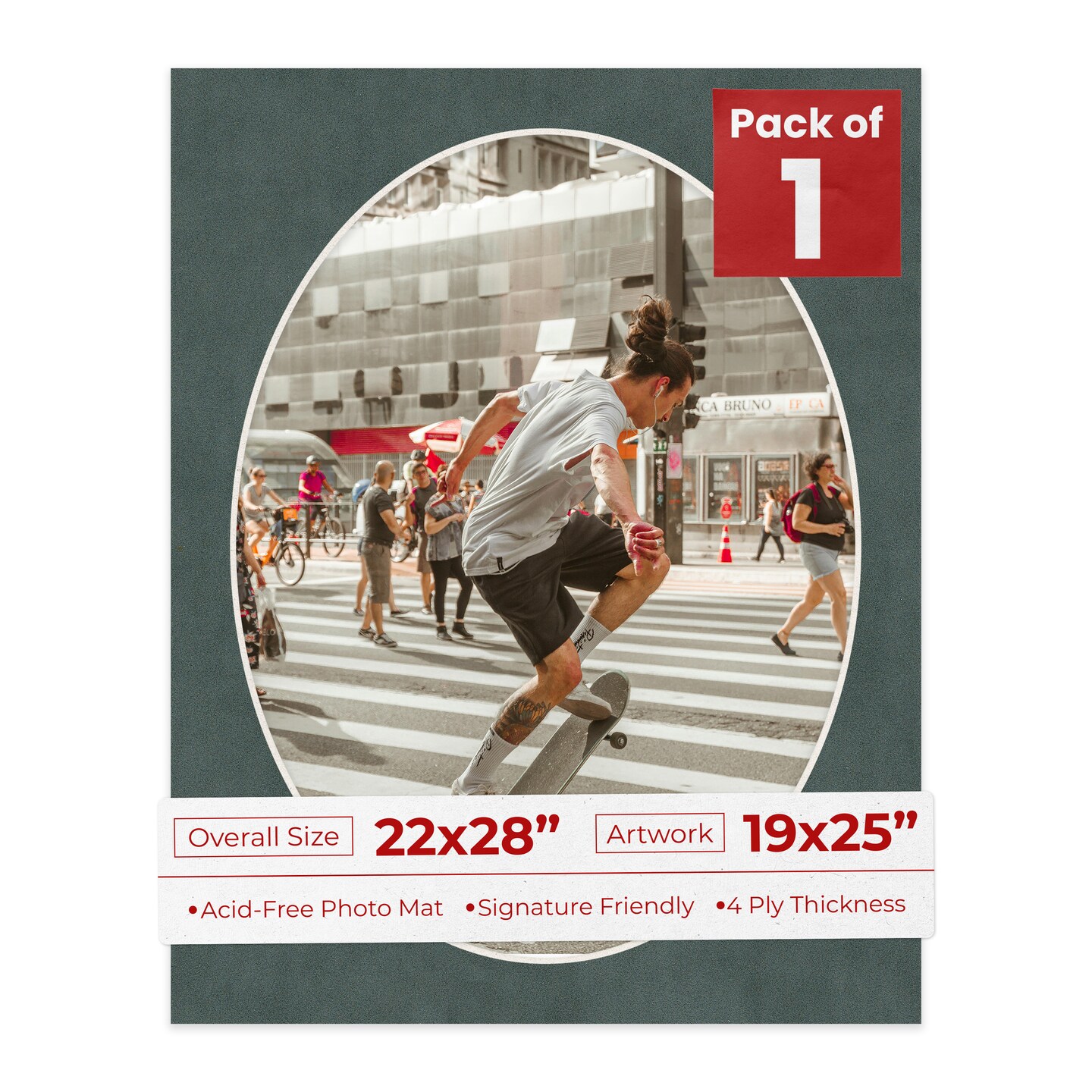 Dark Grey Suede Mat Board for 22x28 Frames - Oval Opening for 19x25 Photos