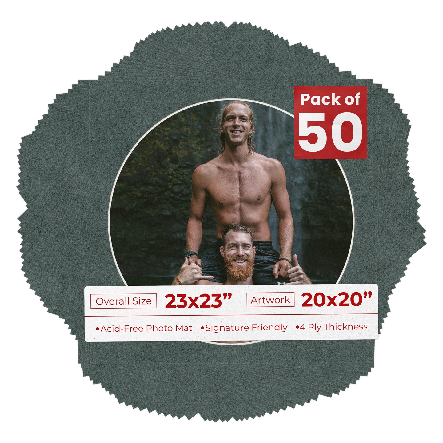 Dark Grey Suede Mat Board for 23x23 Frames - Circle Opening for 20x20 Photos