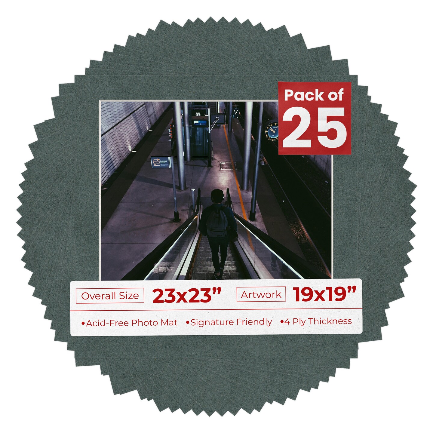 Dark Grey Suede Mat Board for 23x23 Frames - Fits 19x19 Photos