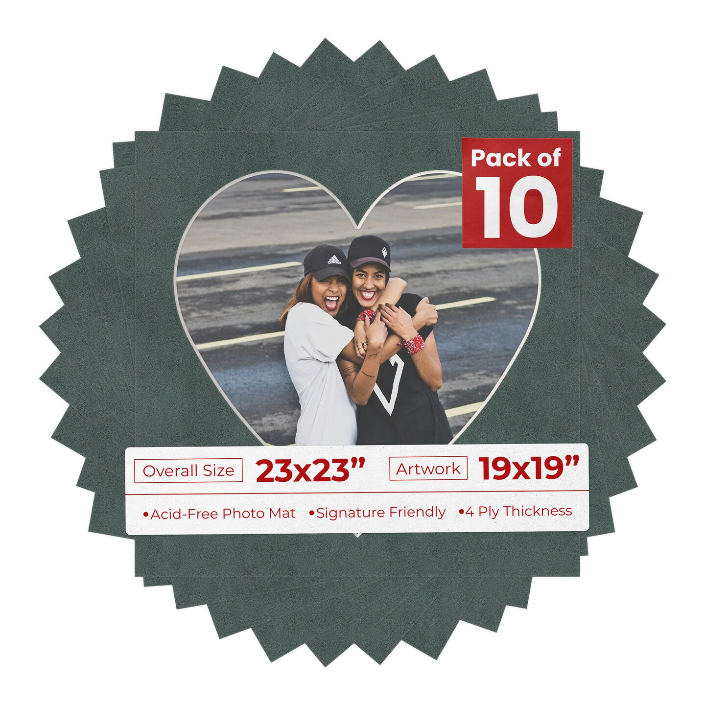 Dark Grey Suede Mat Board for 23x23 Frames - Heart Opening for 19x19 Photos