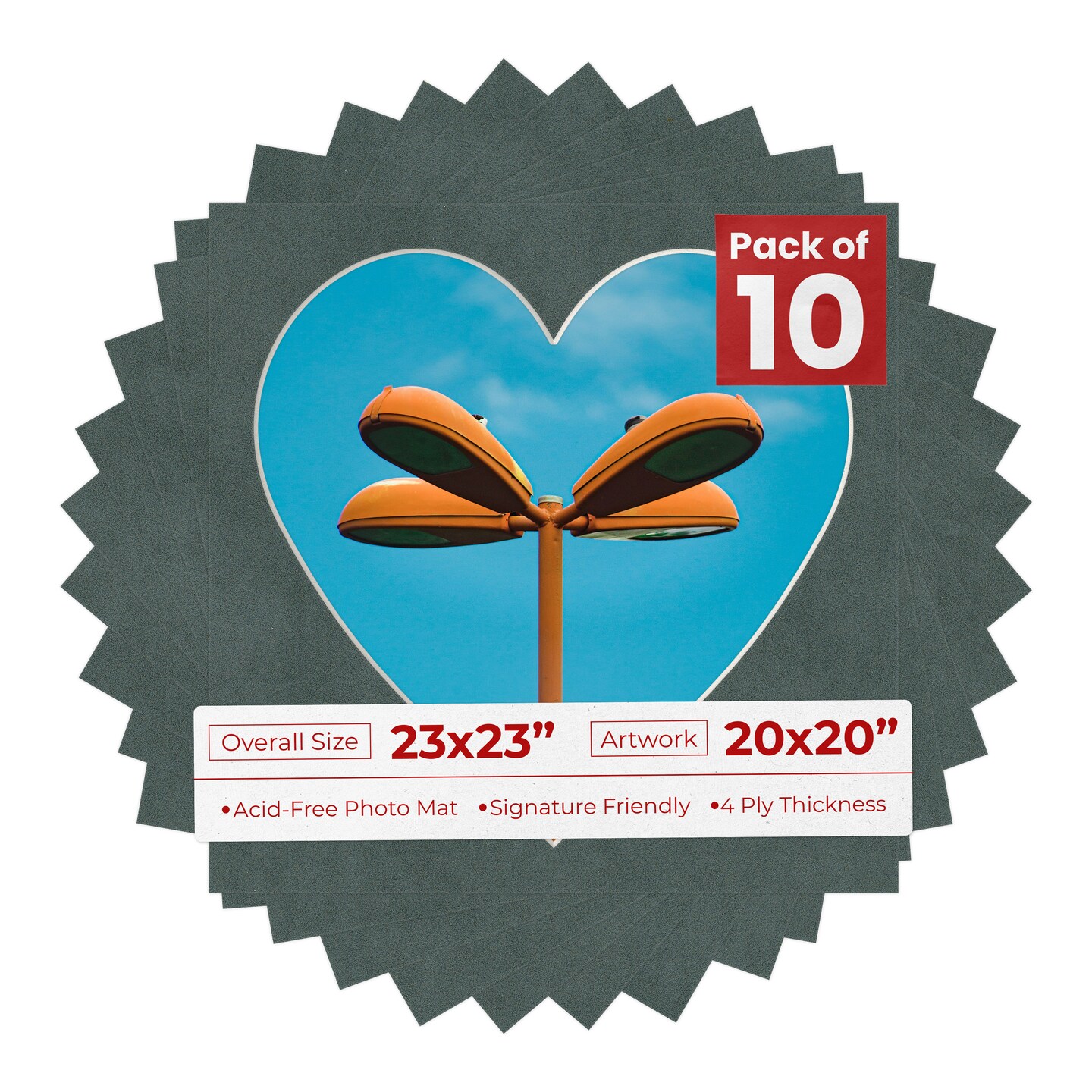 Dark Grey Suede Mat Board for 23x23 Frames - Heart Opening for 20x20 Photos