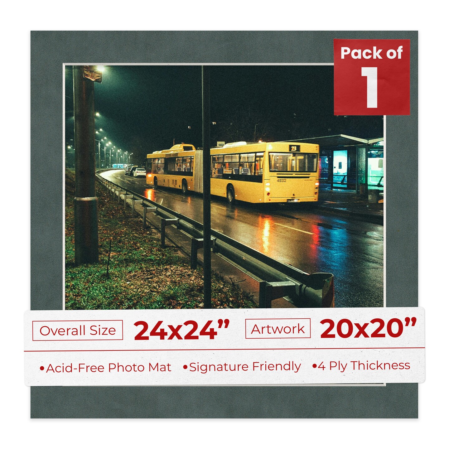 Dark Grey Suede Mat Board for 24x24 Frames - Fits 20x20 Photos