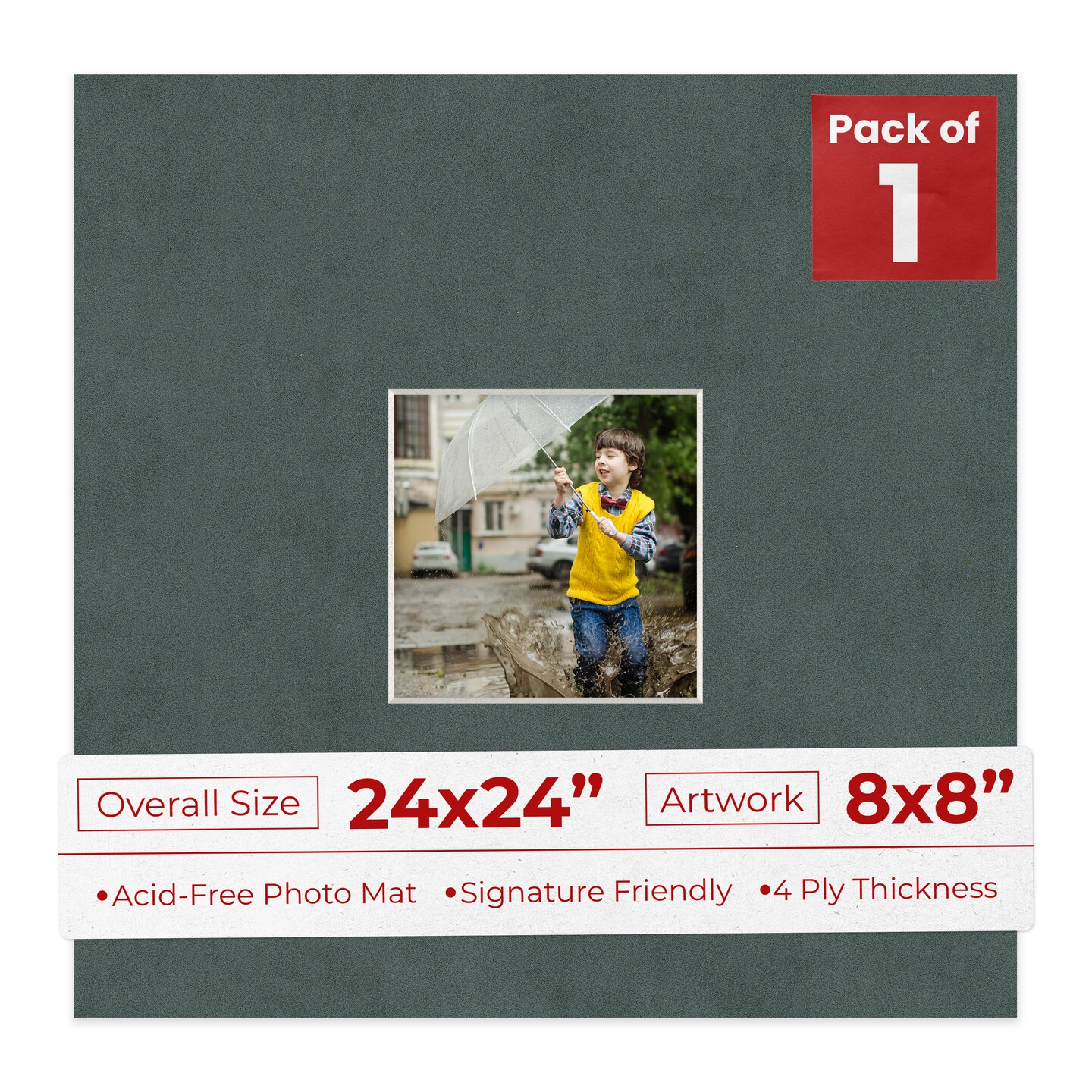Dark Grey Suede Mat Board for 24x24 Frames - Fits 8x8 Photos