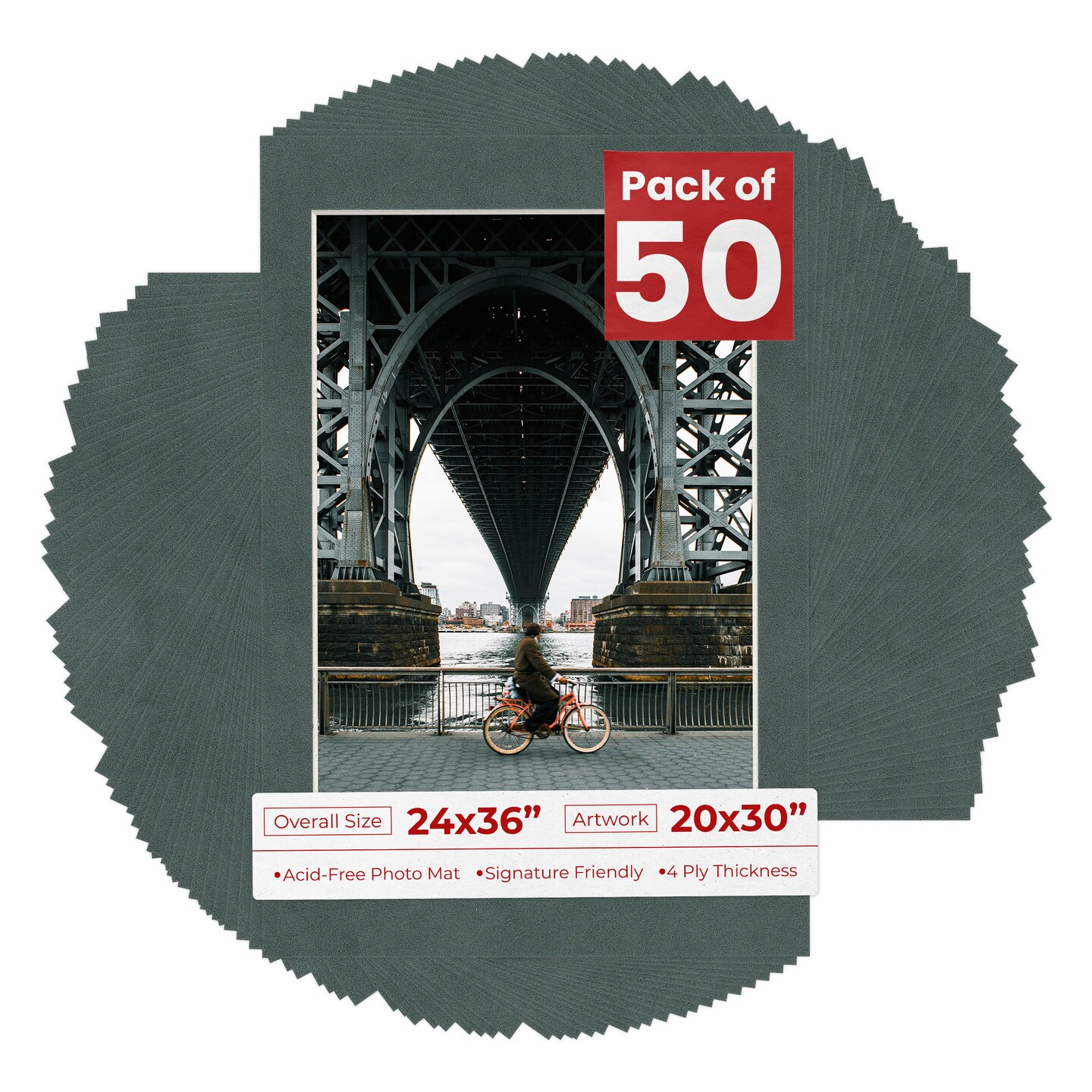 Dark Grey Suede Mat Board for 24x36 Frames - Fits 20x30 Photos