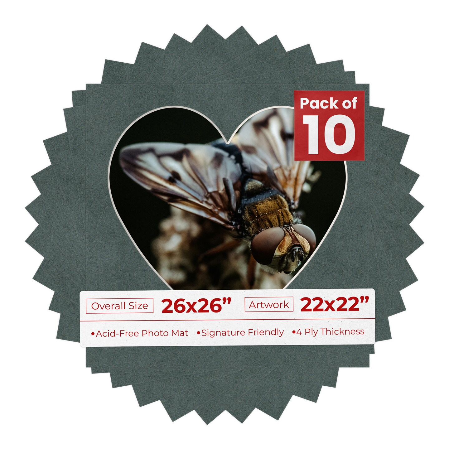 Dark Grey Suede Mat Board for 26x26 Frames - Heart Opening for 22x22 Photos