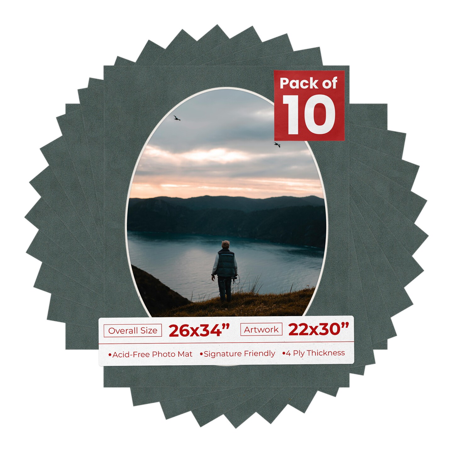 Dark Grey Suede Mat Board for 26x34 Frames - Oval Opening for 22x30 Photos