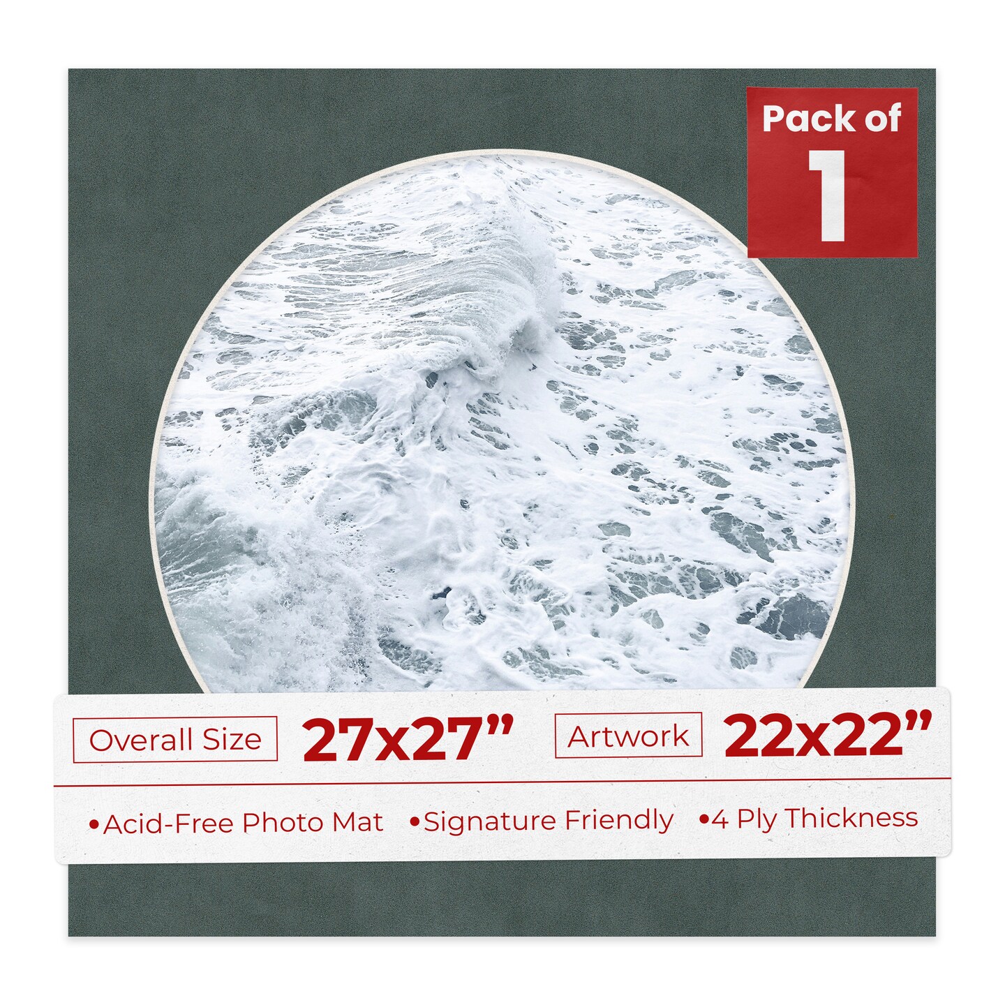 Dark Grey Suede Mat Board for 27x27 Frames - Circle Opening for 22x22 Photos