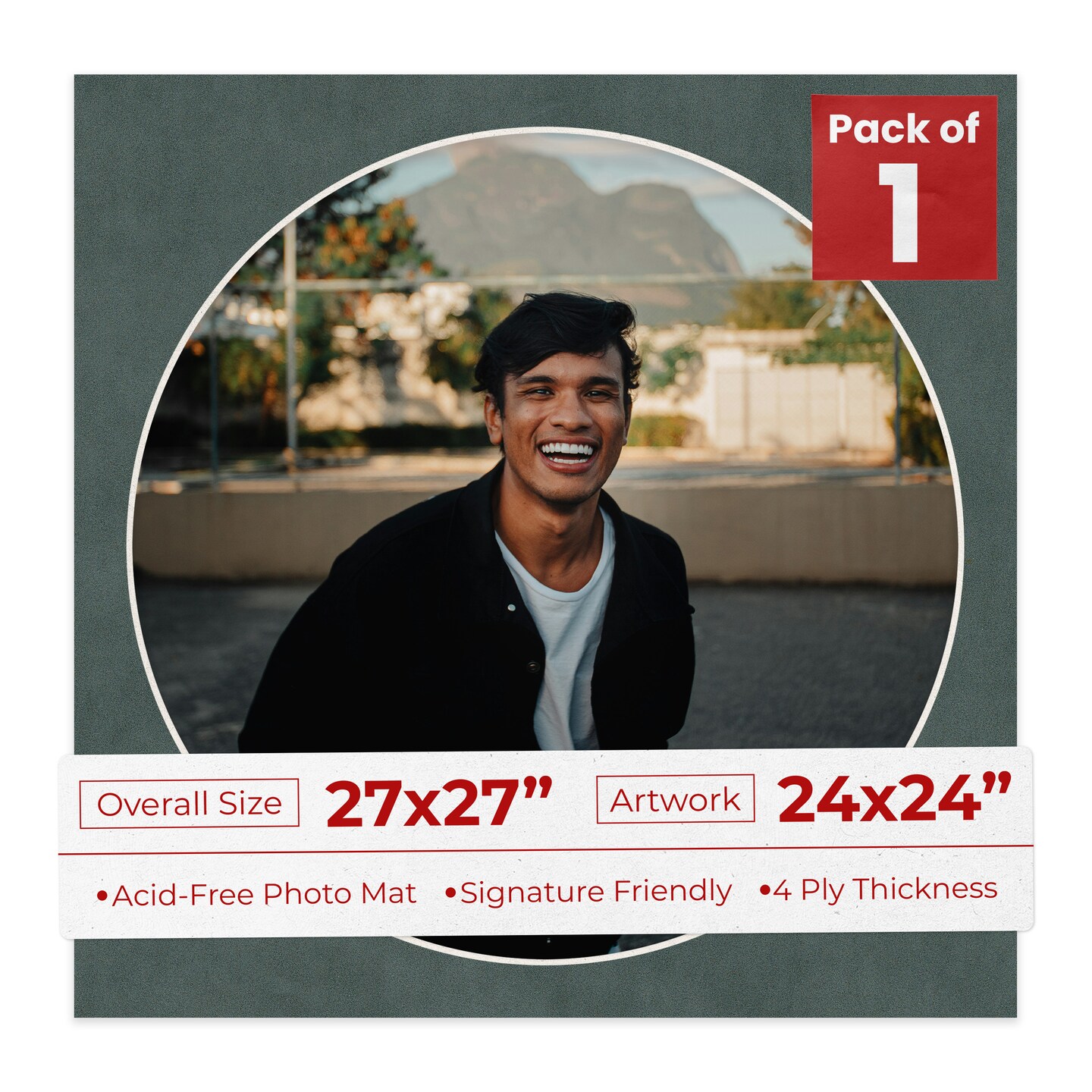 Dark Grey Suede Mat Board for 27x27 Frames - Circle Opening for 24x24 Photos