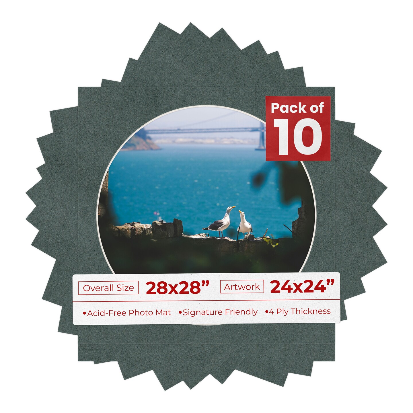 Dark Grey Suede Mat Board for 28x28 Frames - Circle Opening for 24x24 Photos