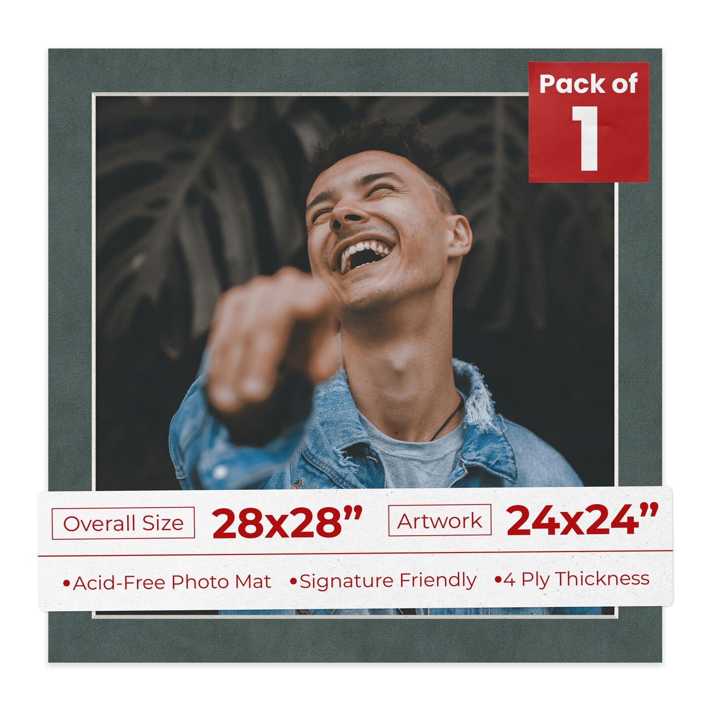 Dark Grey Suede Mat Board for 28x28 Frames - Fits 24x24 Photos